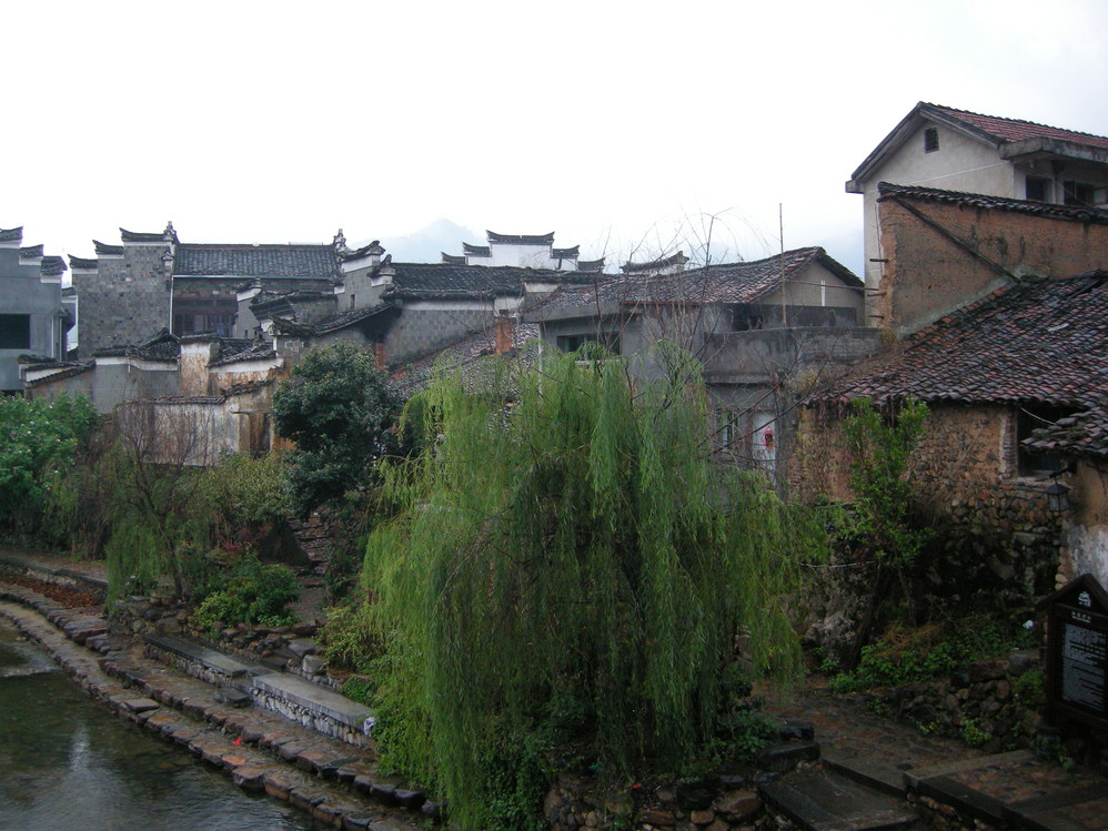 2011年10月3日我们一行4人来到了廿八都, ****** 地居 ****** 省 ****** 市 ****** 高山深谷之中,地势险要。四方关隘拱列,东有安民关,南有枫岭关,西有六石关,北有 ****** ,易守难攻。三省边界的地理位置和历史上的频繁战争、屯兵、移民,使廿八都成为“方言王国”和名副其实的“百姓古镇”,镇上有9种方言和130余种姓氏。长条形布局的城镇,古建筑风貌依旧。枫溪水自北向南穿镇而过,民居依山傍水,缘溪而建。青山绿水间,黛瓦青墙、保存完整的古建筑群错落有致,至今仍保留着19世纪的风貌。(以上一段从百度上粘下来的)因为十月长假,各景区人满为患,我们又想逃离城市,就来到了这个较为偏僻的村落,在行前我上了古镇网查询了旅馆,结果找到了“杨家大院”,按照所给的电话打给了店家,结果到了那里才知道有两个“杨家大院",一个在景区外是杨大爷的女儿新开的,有独立卫浴,而我们是订的杨大爷的旧居,没有独立卫浴。