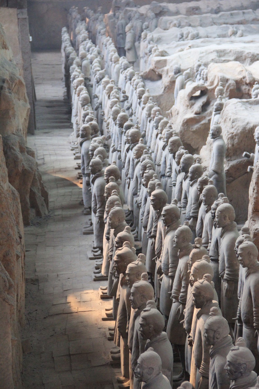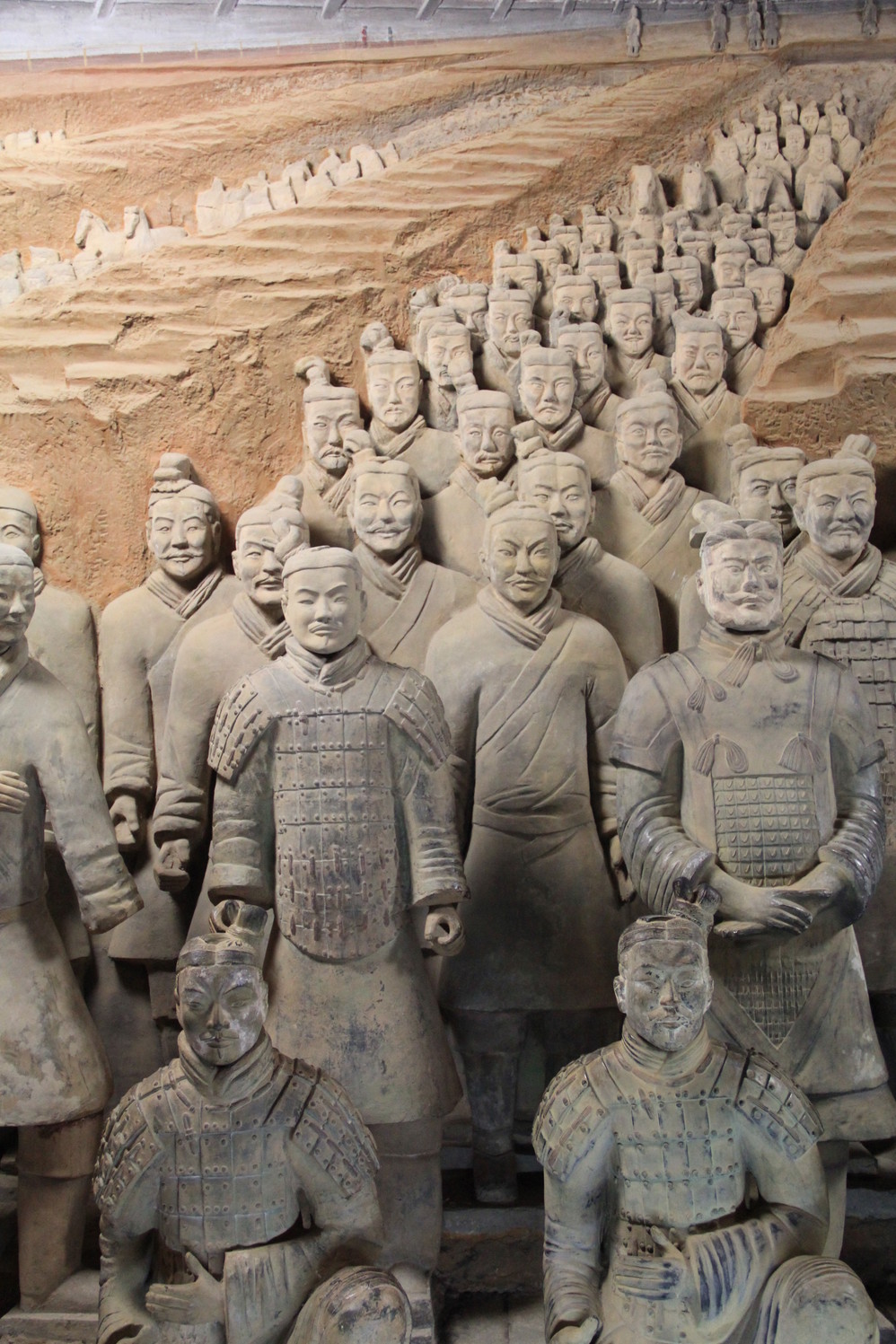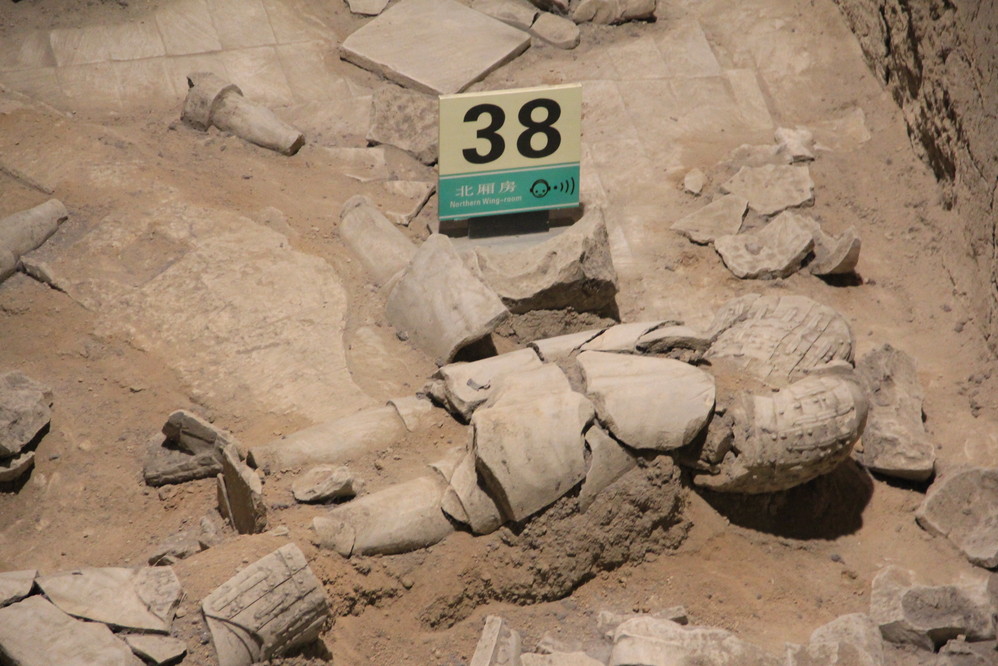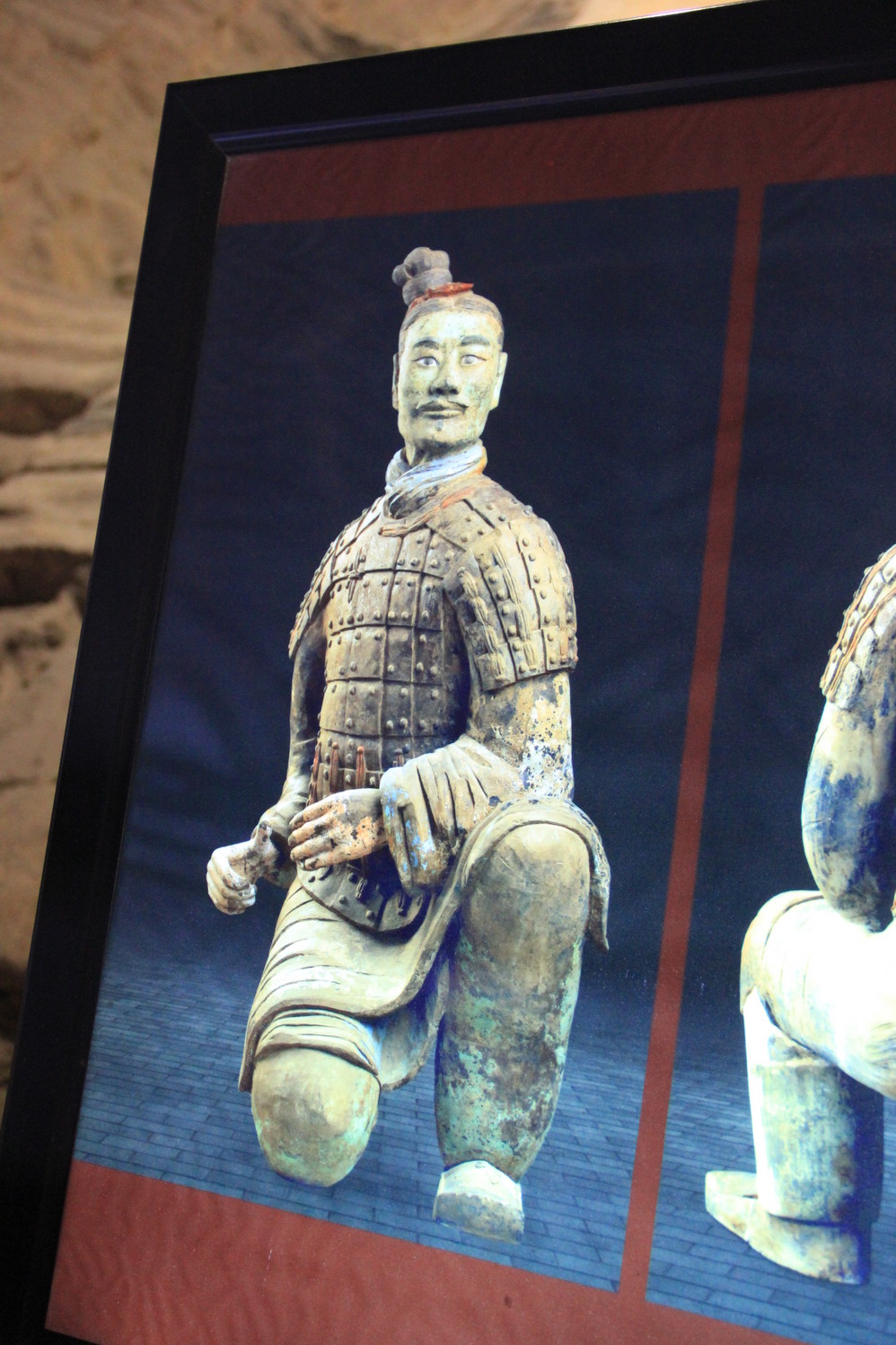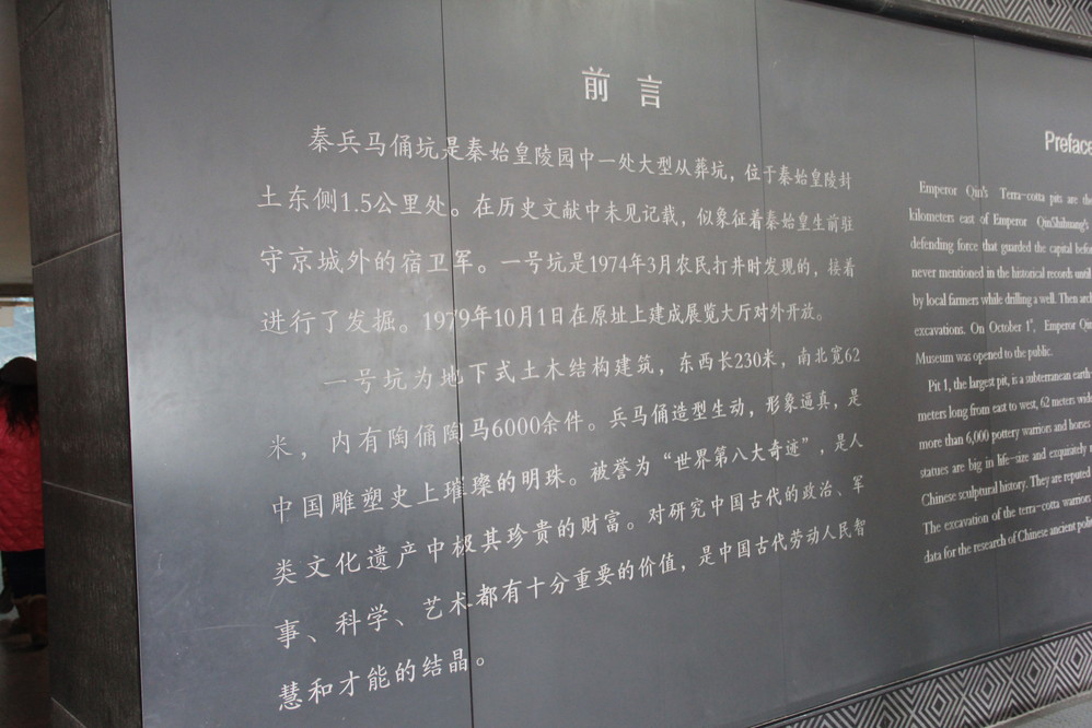 其实兵马俑刚出土的时候是一块块小碎片的,要由专家将它们拼凑起来,据说,一个兵马俑要一个专家花一年的时间才能拼完