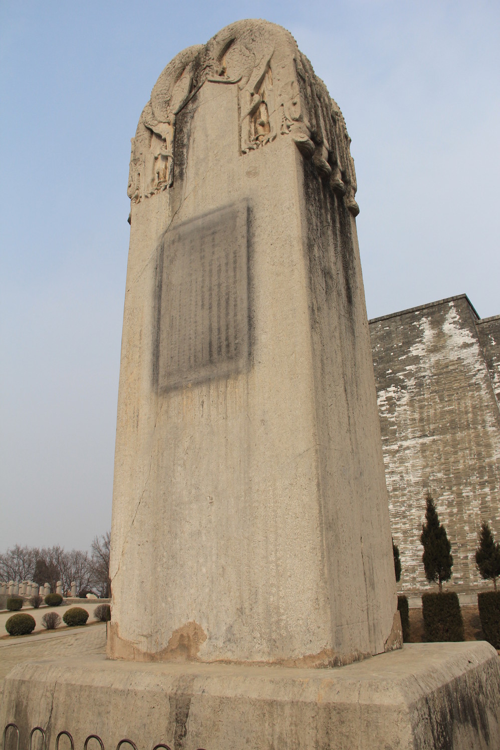 在无字碑的对面,据说是武则天的儿子李显为母亲重新立的一块,同样的,也是一块
