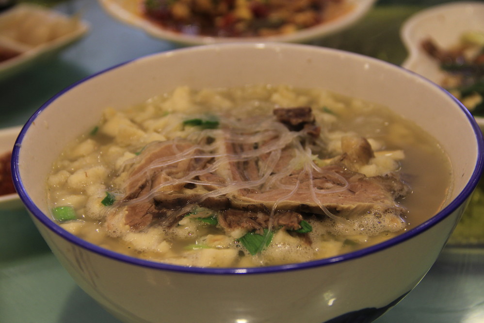 超级大一碗,我没吃完,我隔壁一桌的几个女孩,一人一碗,外加一个肉夹馍,不一会功夫,全吃完了,实在是佩服