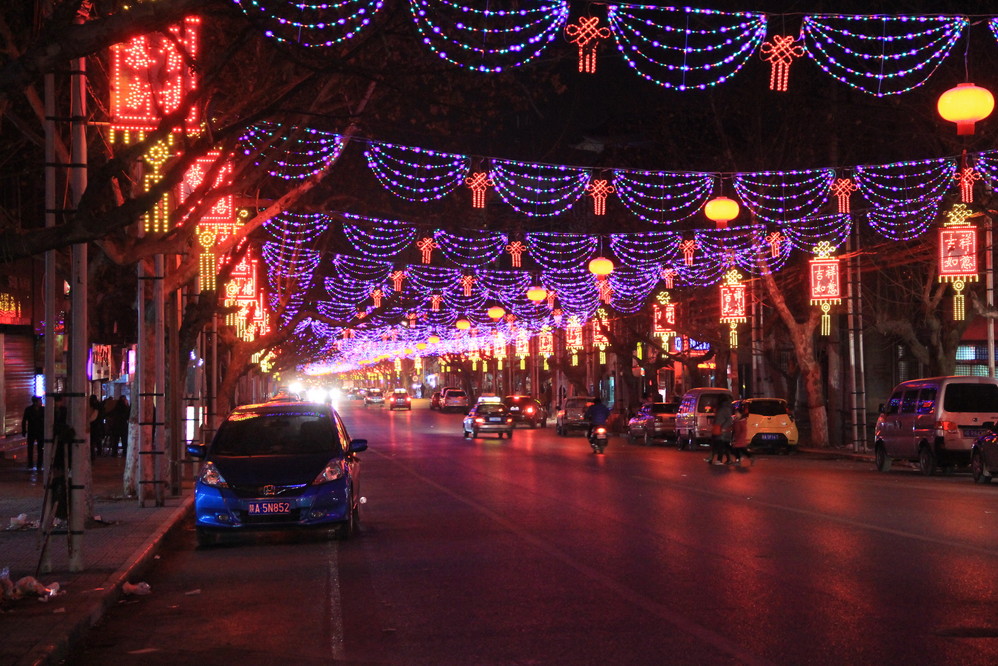 临潼区晚上的夜景还是不错的,不过白天真不咋滴,也就这一条街道好看点