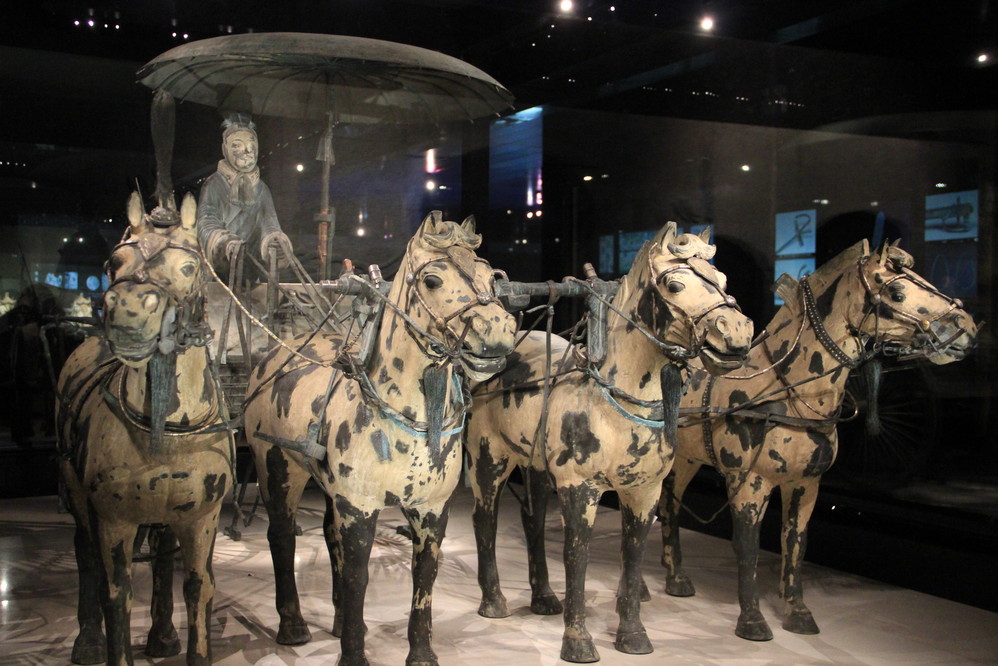 据说当兵马俑刚挖出来的时候是彩色的,很漂亮,几分钟之后就开始氧化,就慢慢变灰了