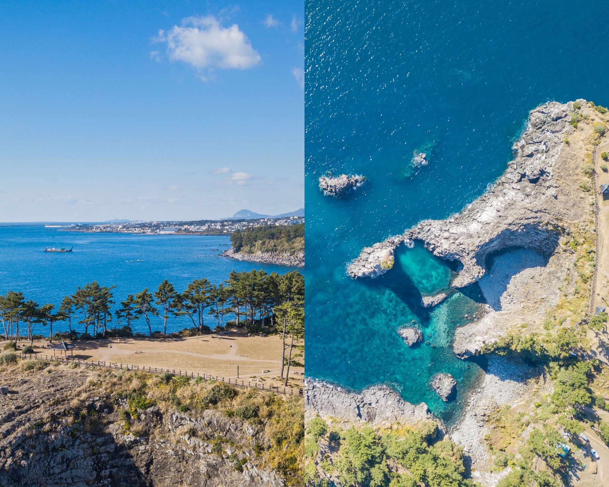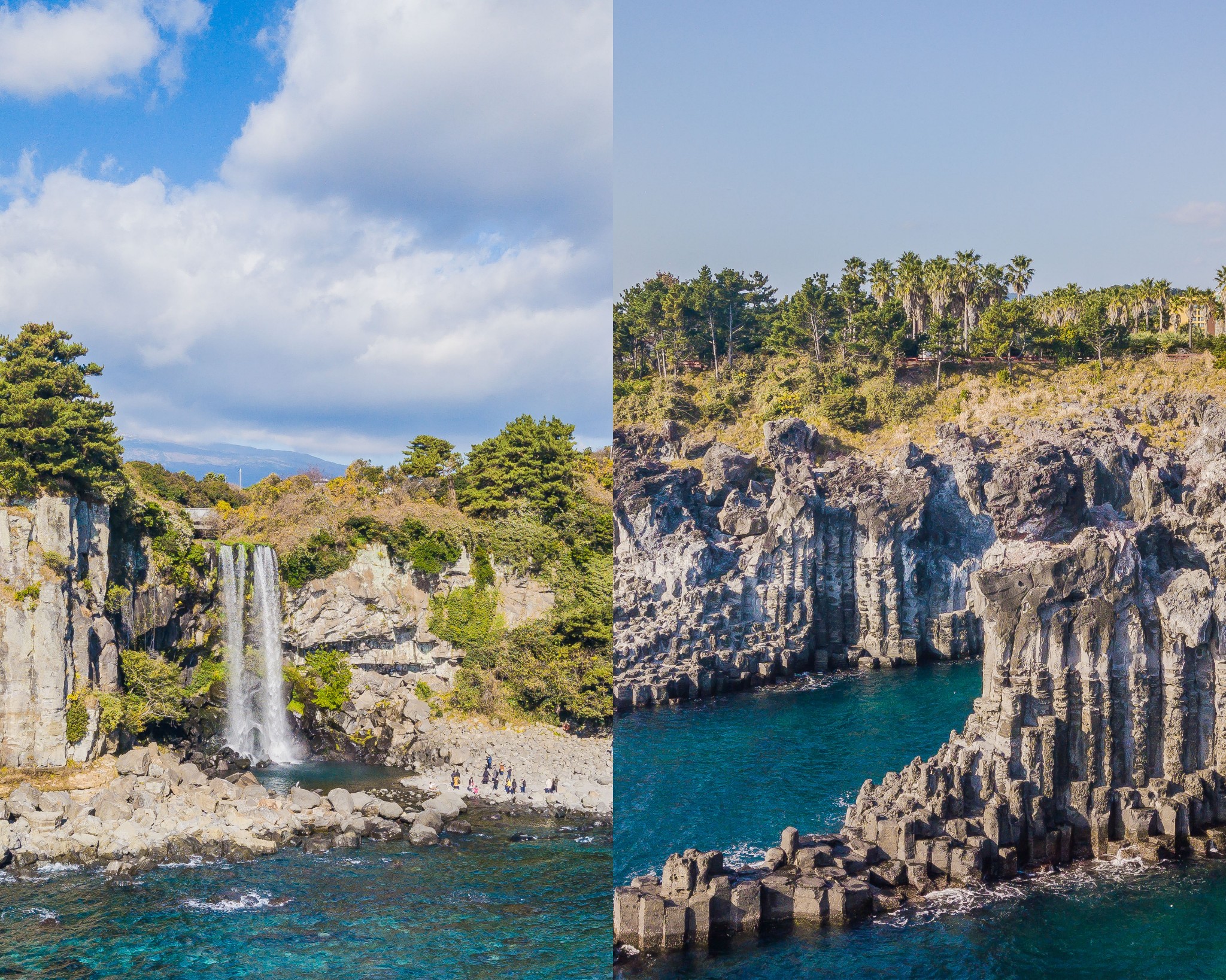 正房瀑布vs柱状节理带,济州岛海岸线两处最神奇的自然景观。