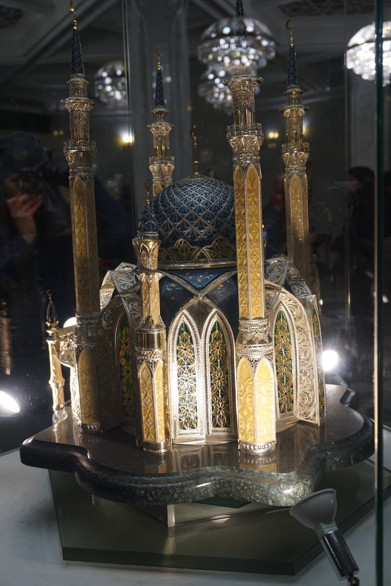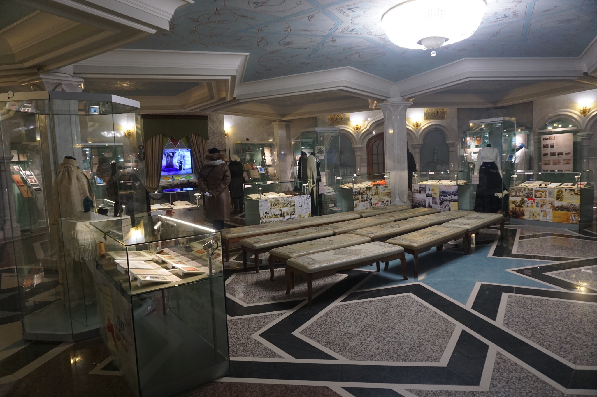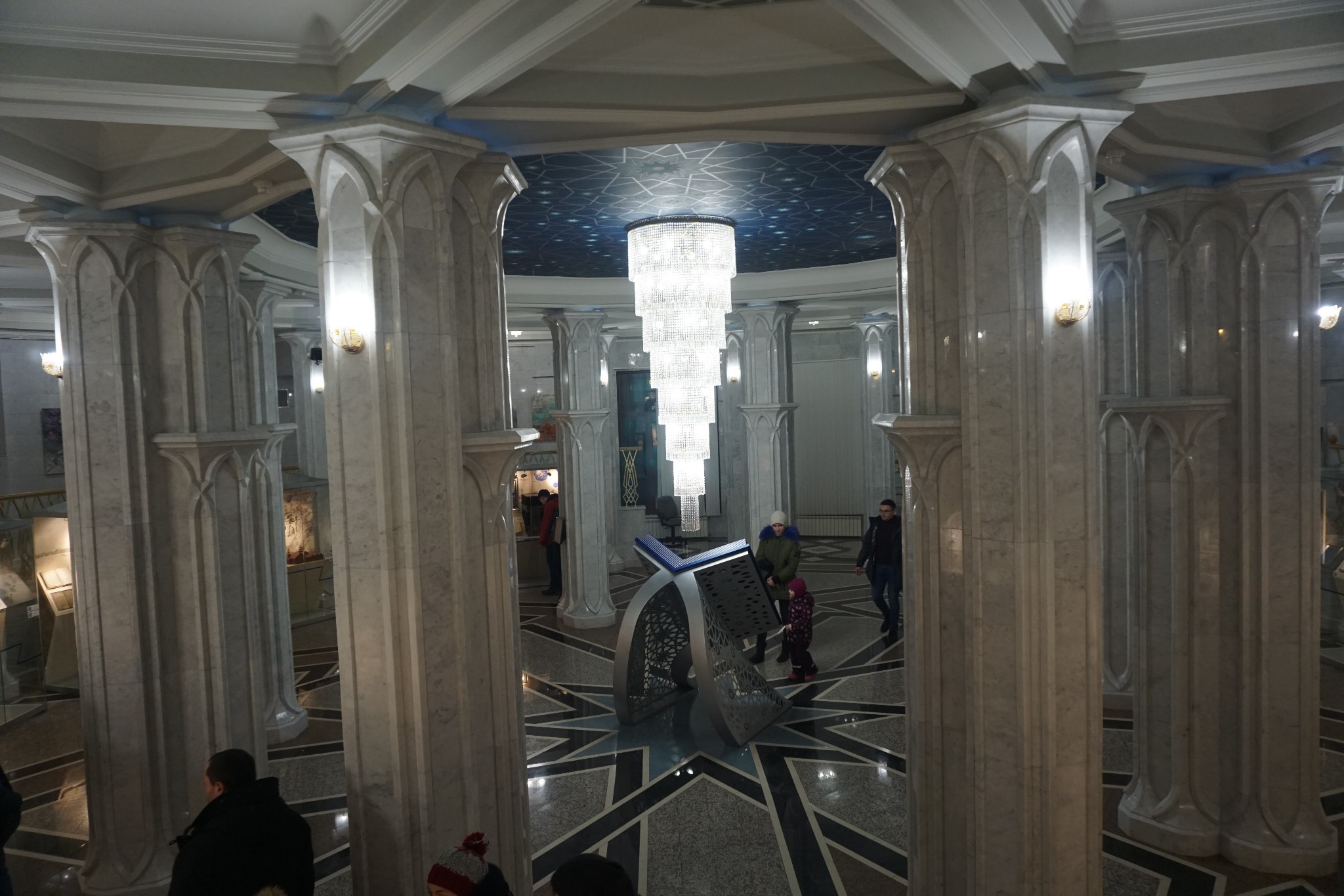 准备进去看看,不清楚我们能不能进去,门口标识是,女士必须带着帽子,羽绒服的帽子正好派上了用场,很多俄罗斯人也是带了帽子,国内的清真寺女人是不能进入的,所以这是第一次进入清真寺,整个清真寺可以算作一个博物馆,工作人员都很友善,在清真寺内,看到一个门卫,念古兰经像唱歌一样,非常动听,一旁很多人都听的入了神。这个时候感受到了信仰的伟大,也许因为有信仰才有了生活下去的信念和信心,以及精神和心灵的寄托,所以应该尊重每个人的信仰。