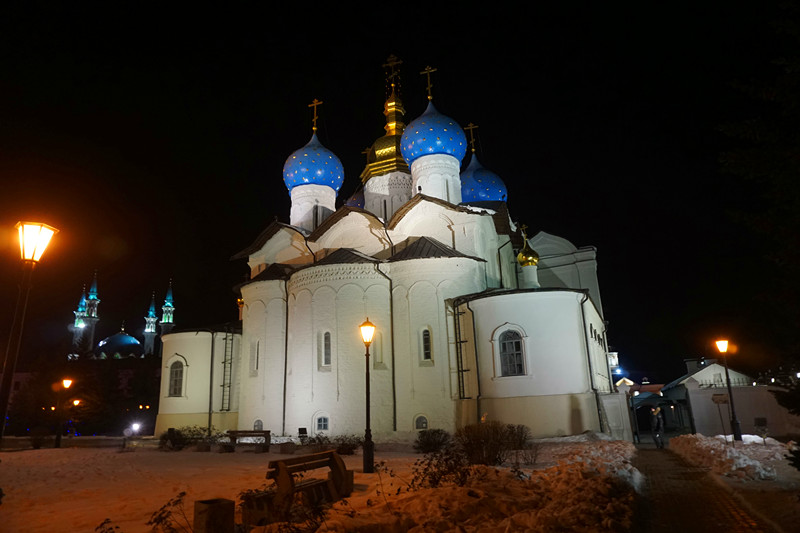 第一餐,我们随便吃了一些俄餐,准备转完克里姆林再去好好地饱餐一顿。喀山天黑的很早,3点多天就黑了,比彼得堡天黑的还早。在下车的那一刻,真是美的让我忘记了呼吸,去了那么多有克里姆林的城市,还是这里的最好看,看了那么多网上的图片,真是不如自己亲眼所见。