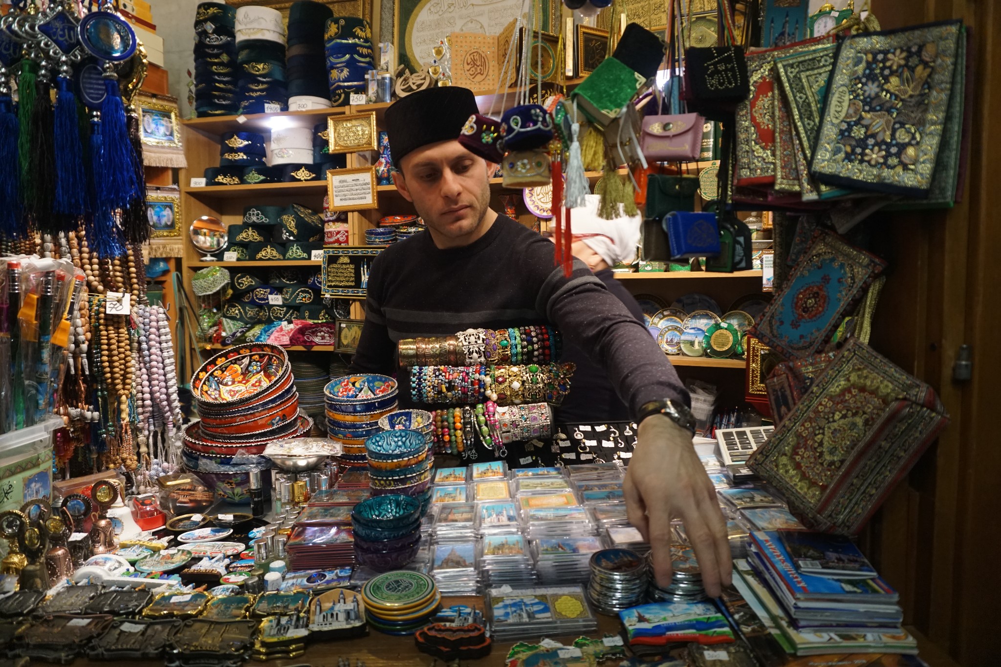 清真寺门口卖纪念品的商店有两个,朋友想买他们的手工碗,小哥好帅,然后多拍了几张。