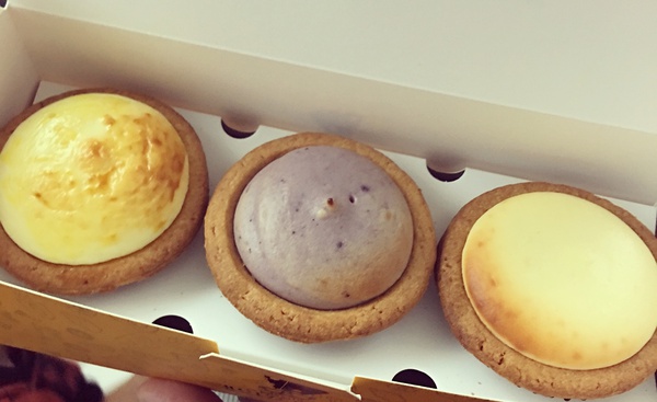 除了传统的葡挞,这几次去澳门,朋友都带我去吃了好吃的芝士挞。半熟的芝士流心挞最早来自于日本北海道,后来在港澳都很流行。Holy Cheese算是澳门第一家专做芝士的bakery,除了最受欢迎的芝士挞,也有好吃的芝士泡芙、芝士紫薯包、芝士蛋糕等等芝士周边产品。半熟的芝士流心挞,挞底非常松软,轻轻咬一口,芝士从中间流出来,幸福感爆棚。芝士不会过甜,味道拿捏得刚刚好。最经典的当然是原味芝士,也有抹茶、朱古力、紫薯等芝士塔,可以选几个不同口味尝尝。