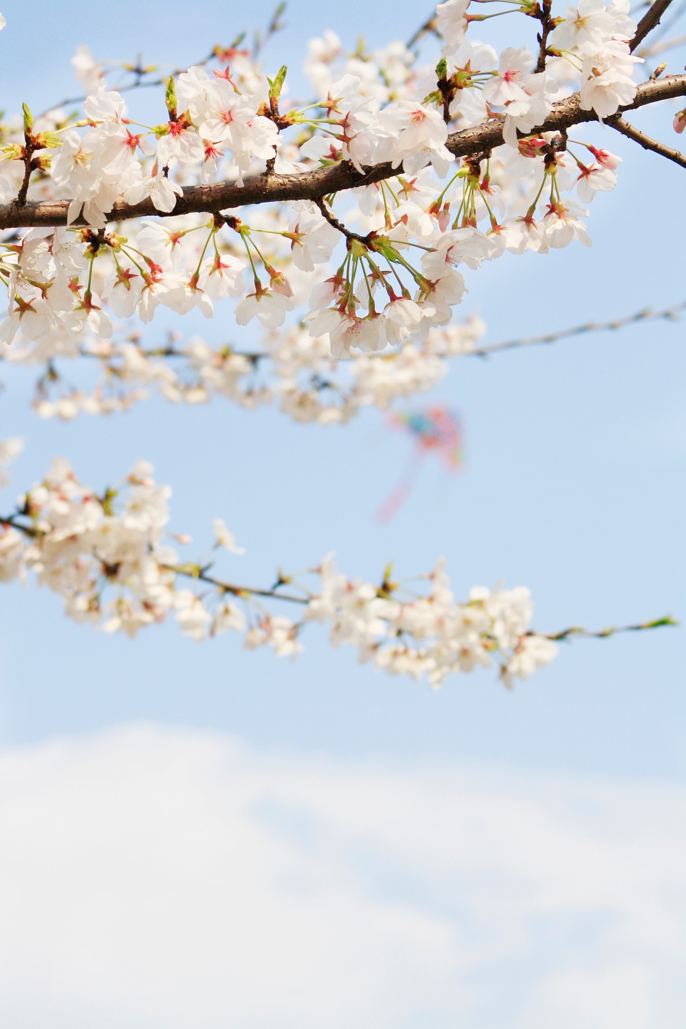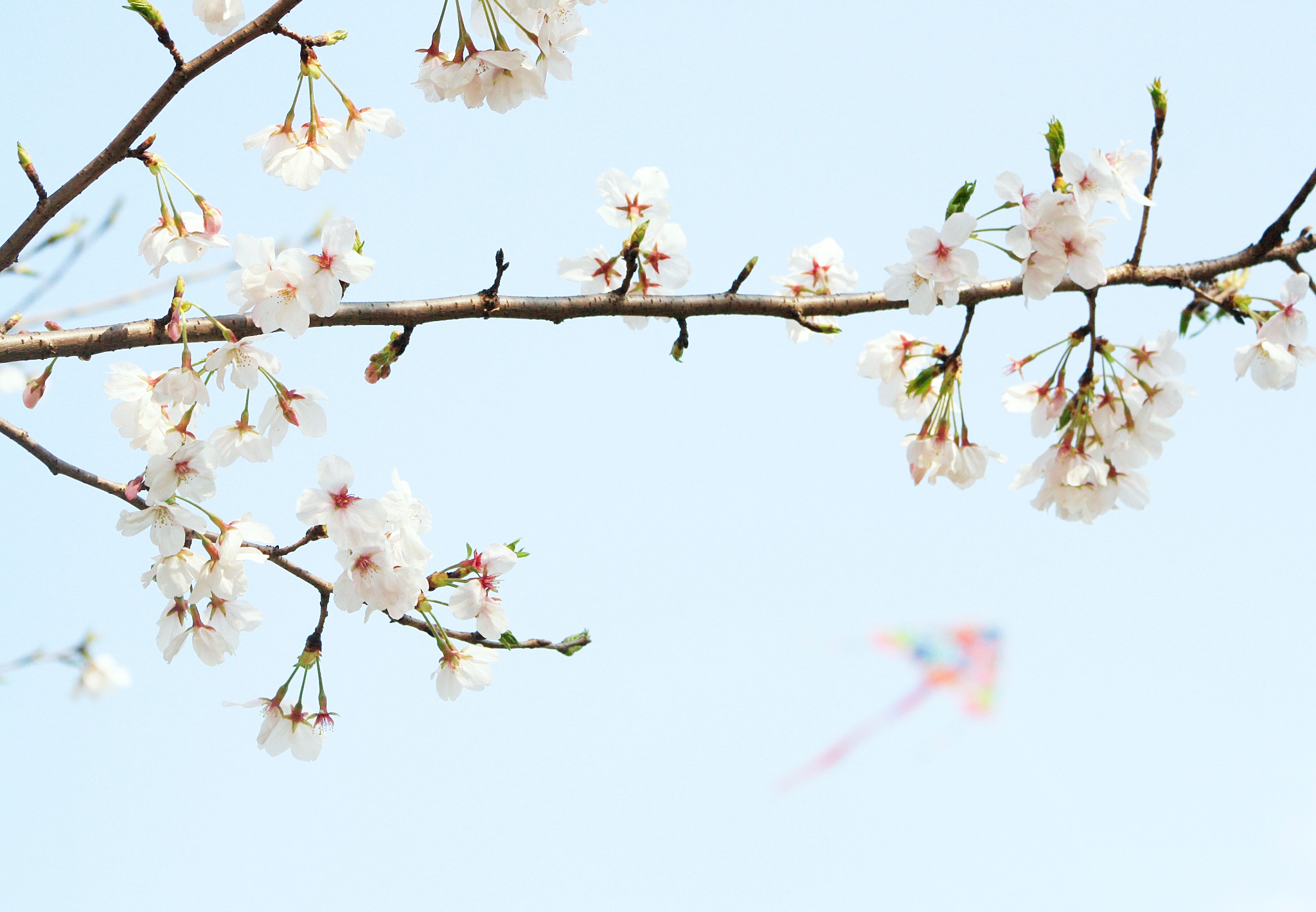 蓝天、樱花和风筝。南林的操场也是对外开放的,恰逢晴天,很多家长都带着孩子出来放风筝。