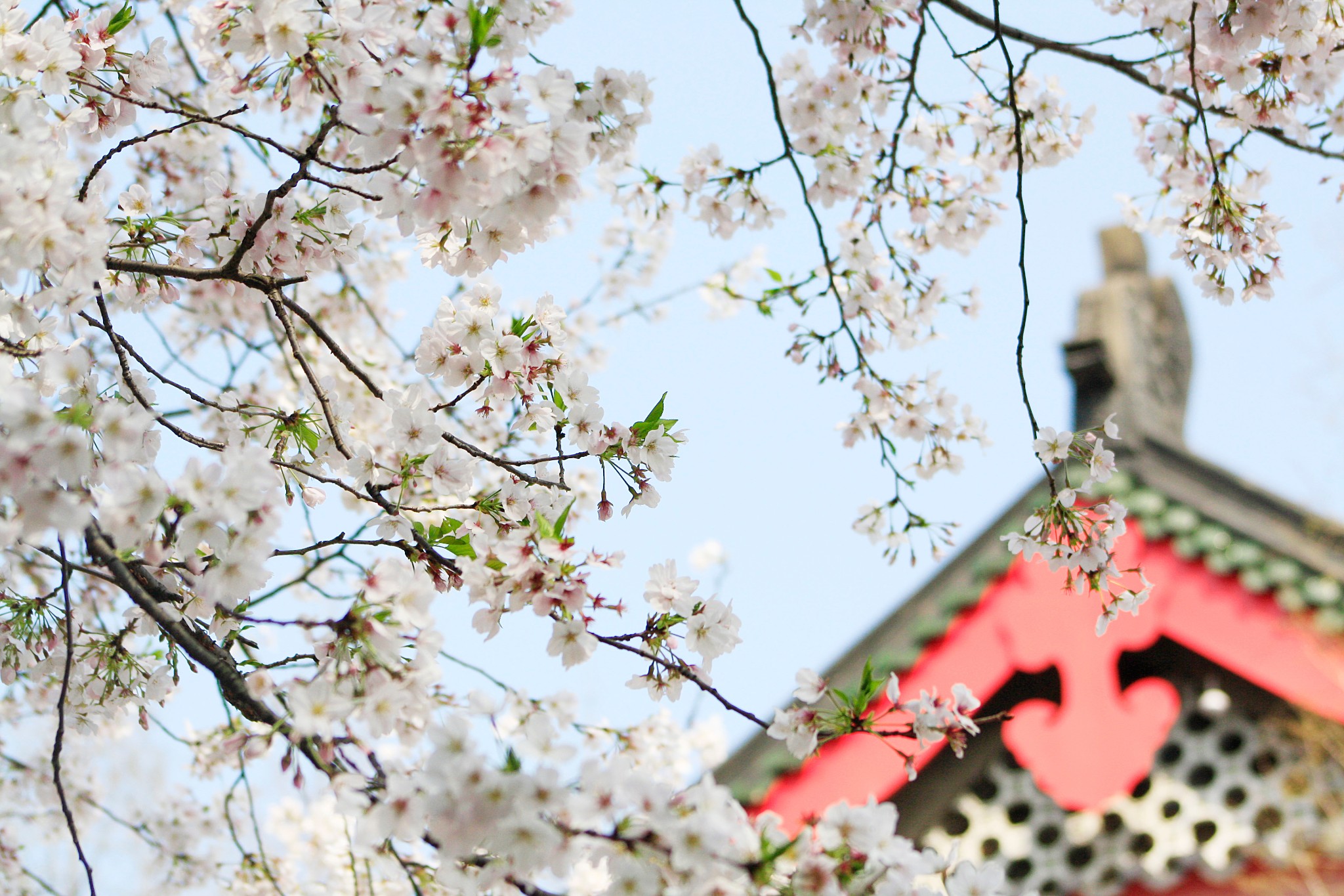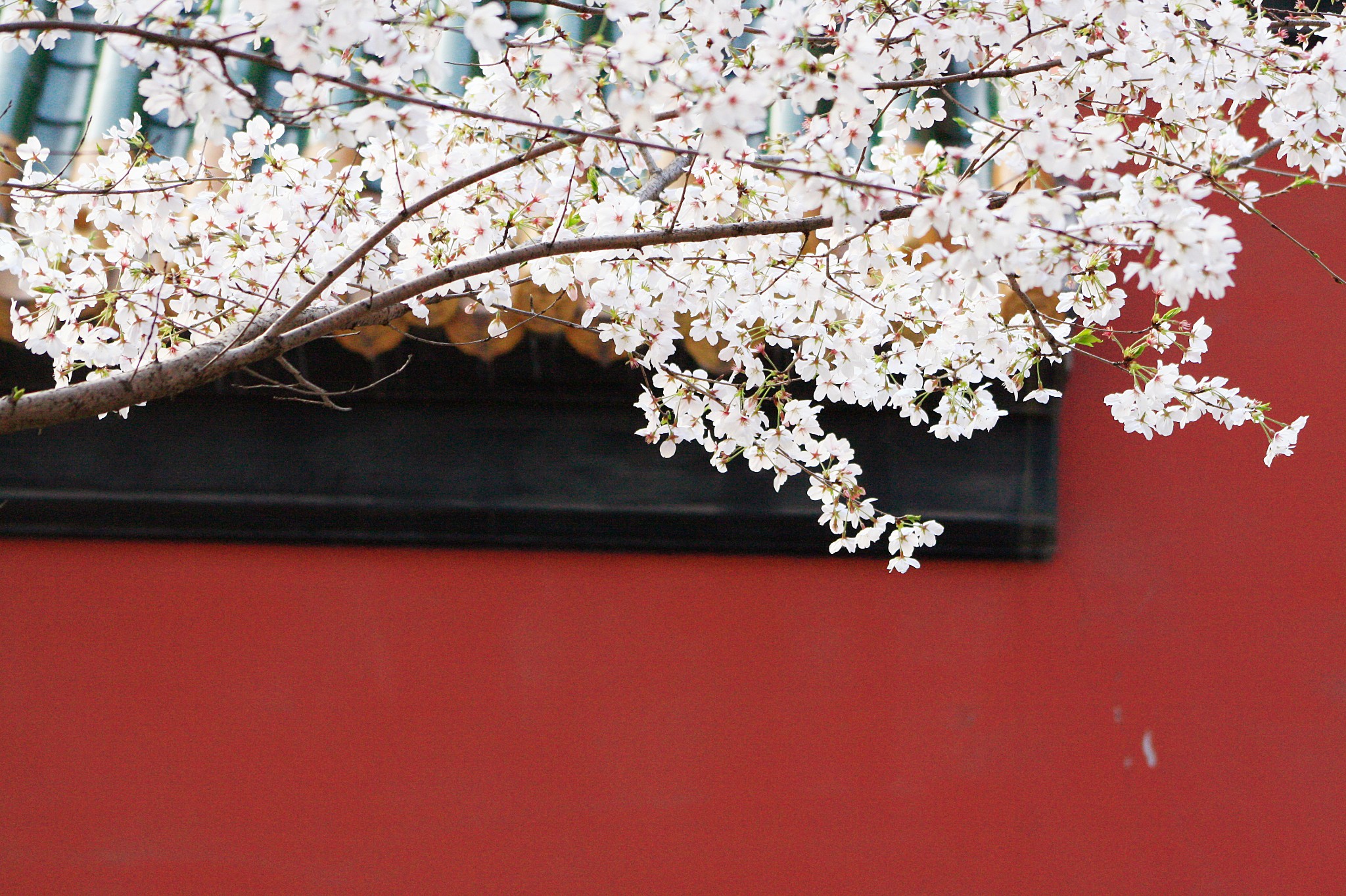 在某个教学前有一棵很大的樱花树,几乎路过的每一个人都要驻足拍照。要拍人像的小伙伴一定记得带好长焦或是自备小板凳,这样才能找到没人进入画面的镜头。