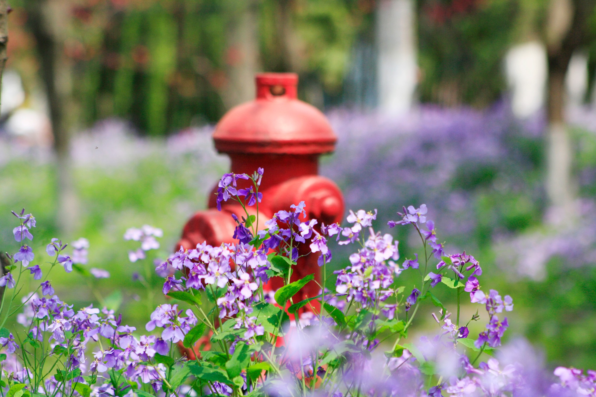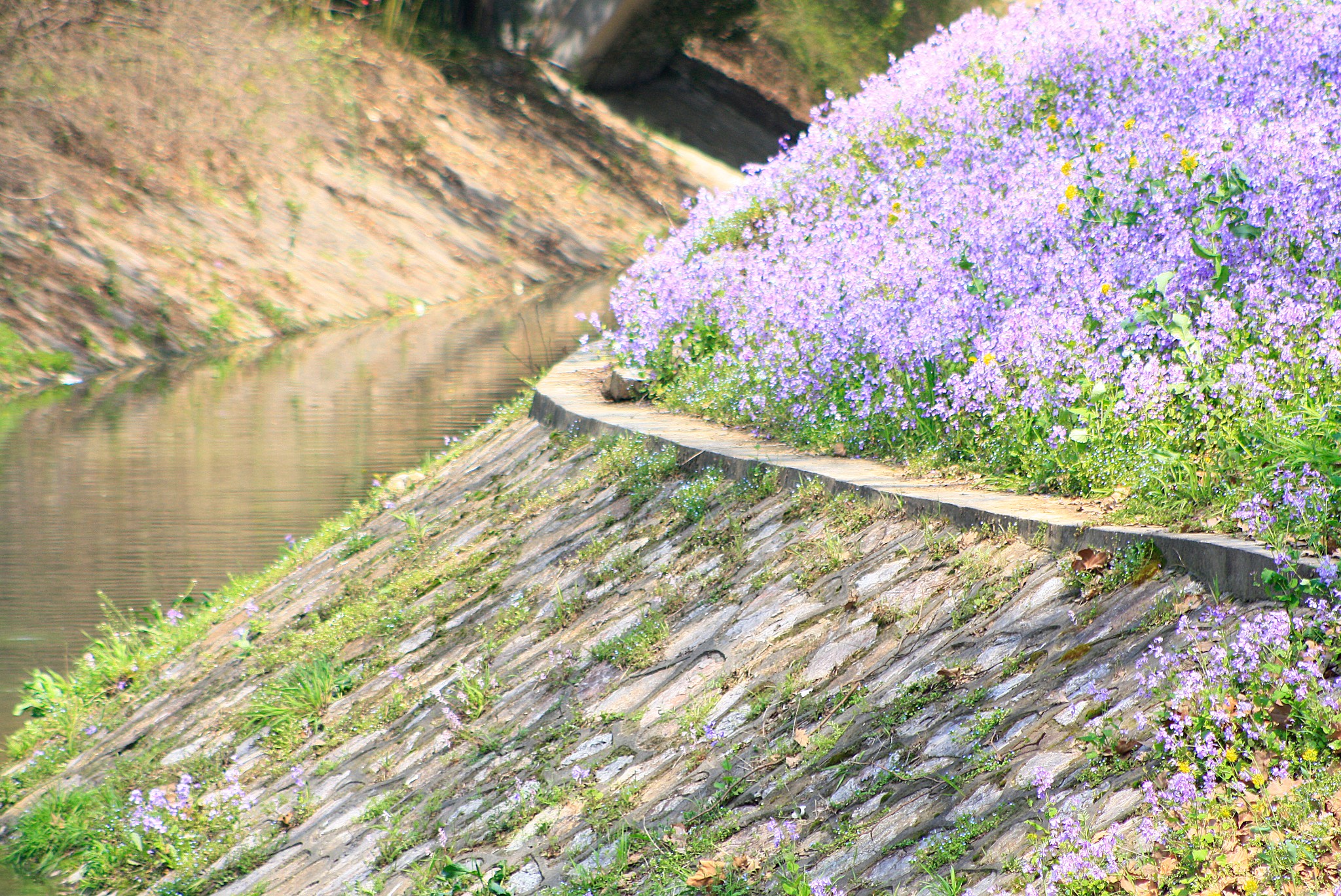 绕过宿舍楼,就来到一条河渠旁,两岸长满了二月兰和桃花,于是相机就咔嚓咔嚓停不下来啦。