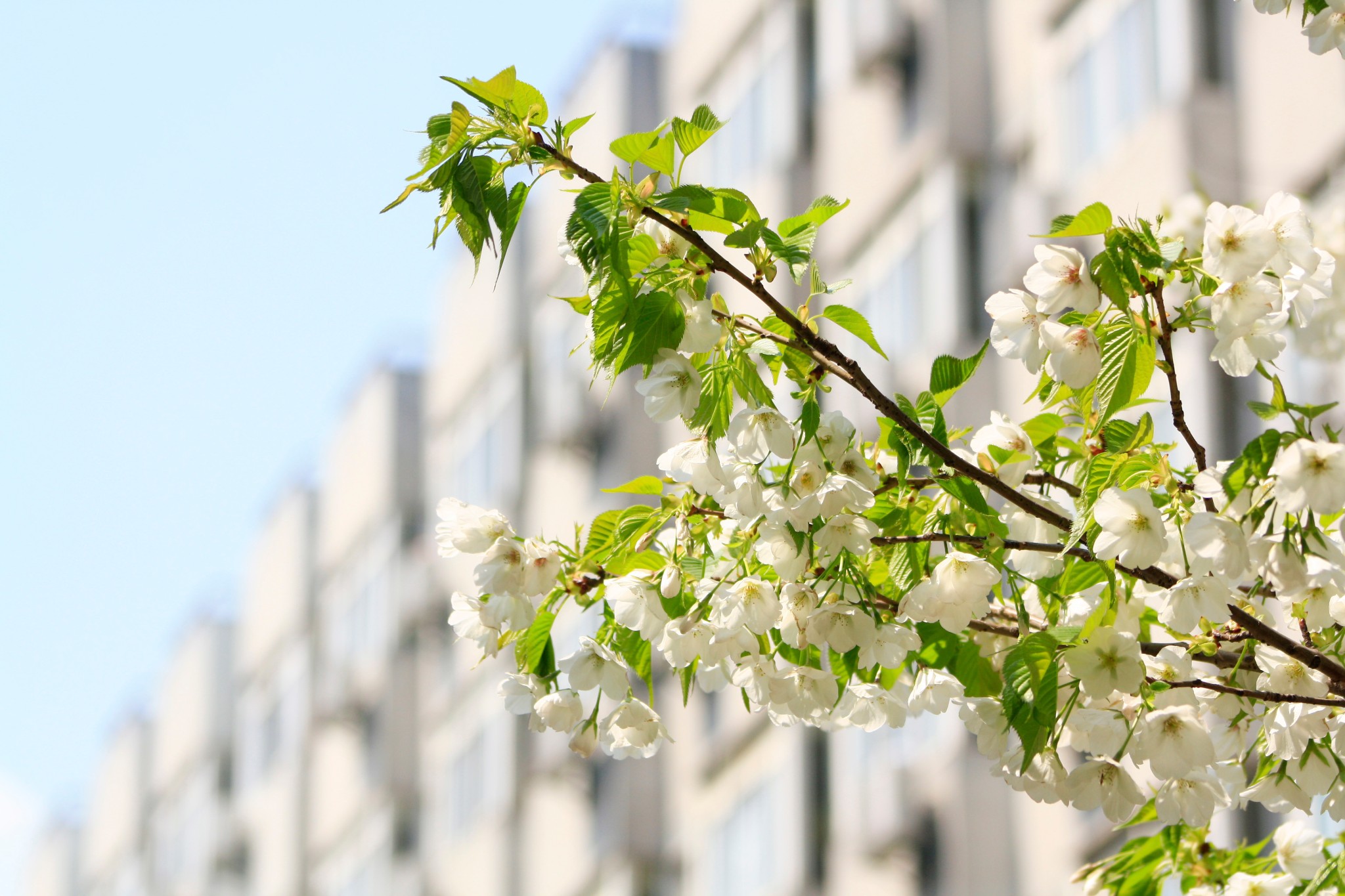 宿舍楼下的樱花开得正好,这个樱花的品种好像是大岛樱。