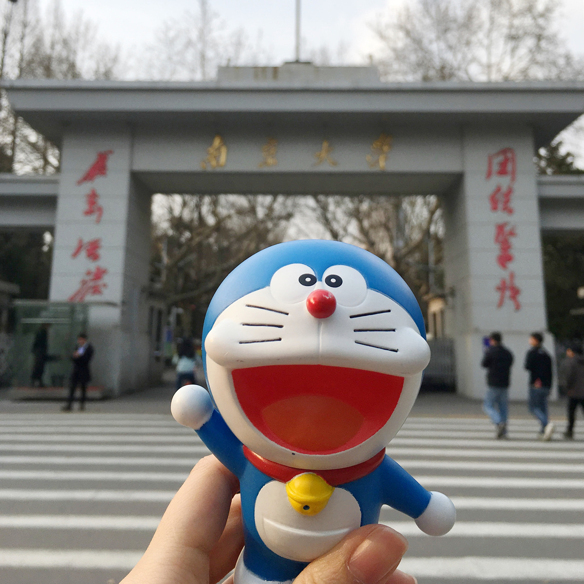 3月底的南京还带着一点冬季的萧瑟,学校里的梧桐树都还是光秃秃的,只看到一些二月兰和海棠花的影子。而且我们去的好像是南大的老校区,好多地方都在整修,感觉不是很好。所以就带着蓝胖子拍一张校门照就好啦。