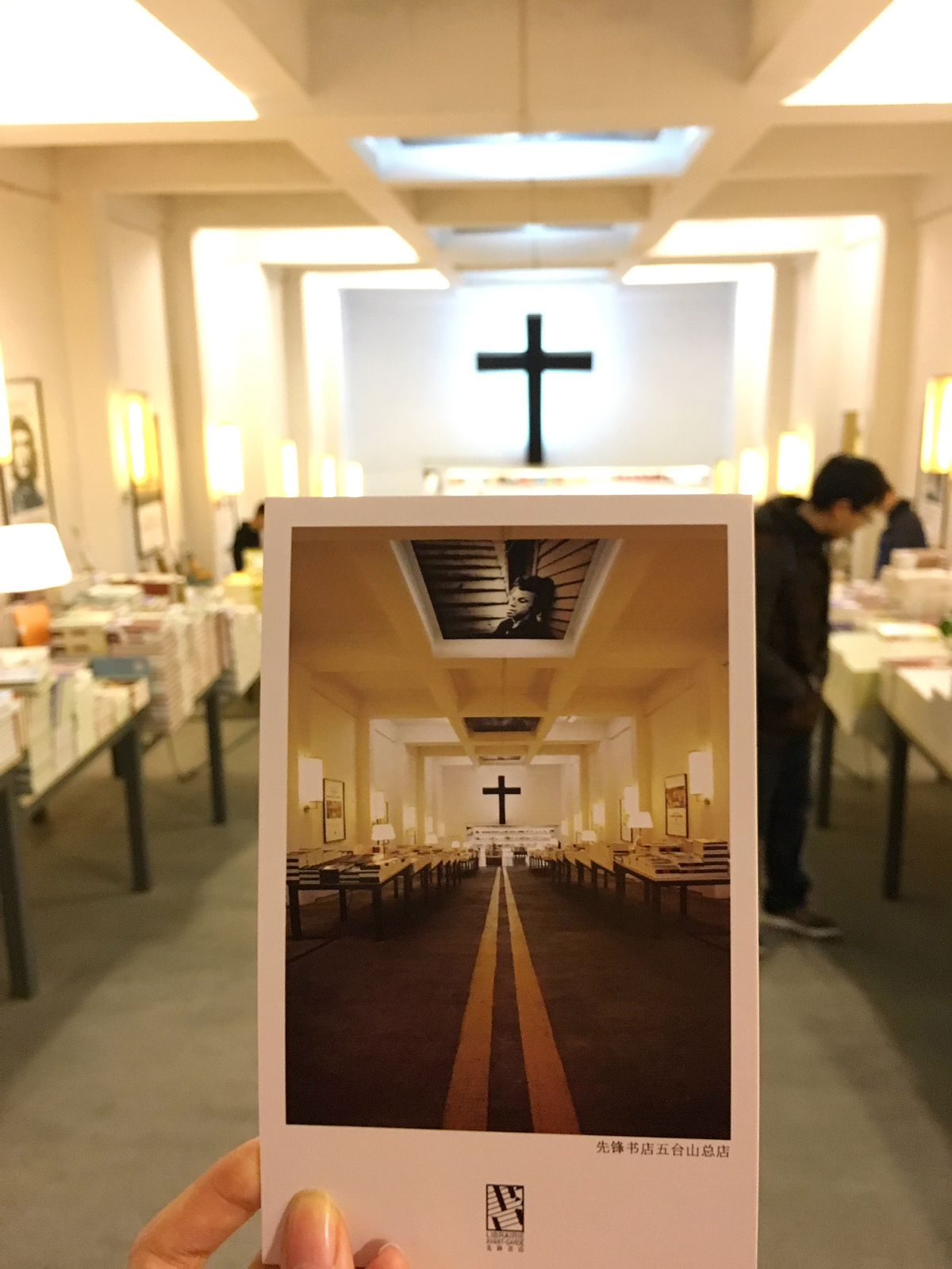 吃完饭又去附近的先锋书店打卡。先锋书店有很多分店,最有名的是五台山店,就在南大附近,走路过去即可。书店是由地下车库改造而成的,最著名的莫过于它的十字架标志了。