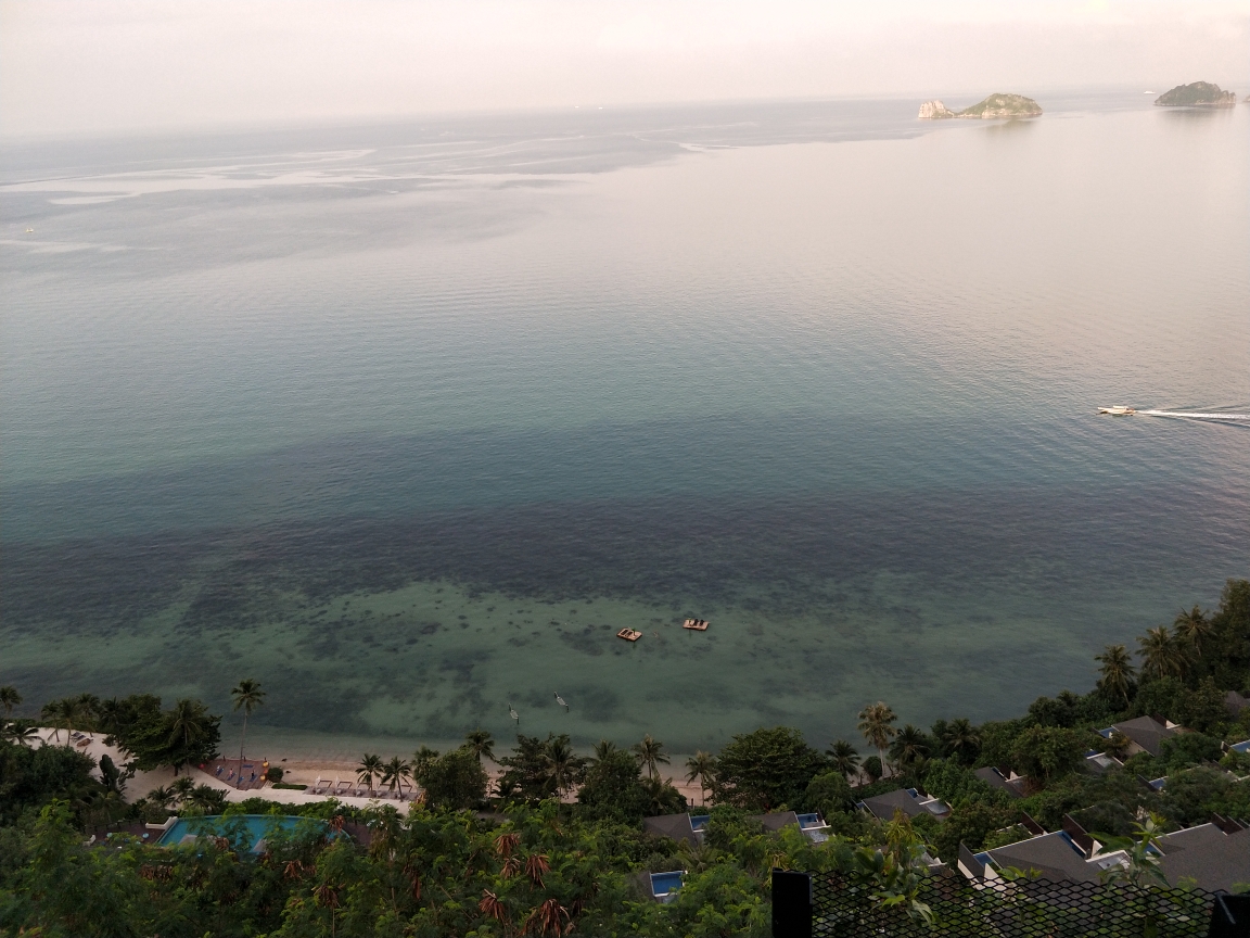 早上6点左右到达苏梅机场。一下飞机,就被潮湿的空气包围,海岛地区的特色。 苏梅机场很小,人也不多。之前送机人员告诉我们,可能需要给海关人员小费,不然可能会被刁难。本来准备了,但是看到前面的游客都没给,我们就又收起来了,而且也没有因为这样,就觉得工作人员态度欠佳。一切都井然有序地进行。一出海关,就迫不及待脱掉厚重的冬装。 大海! 我们来啦!