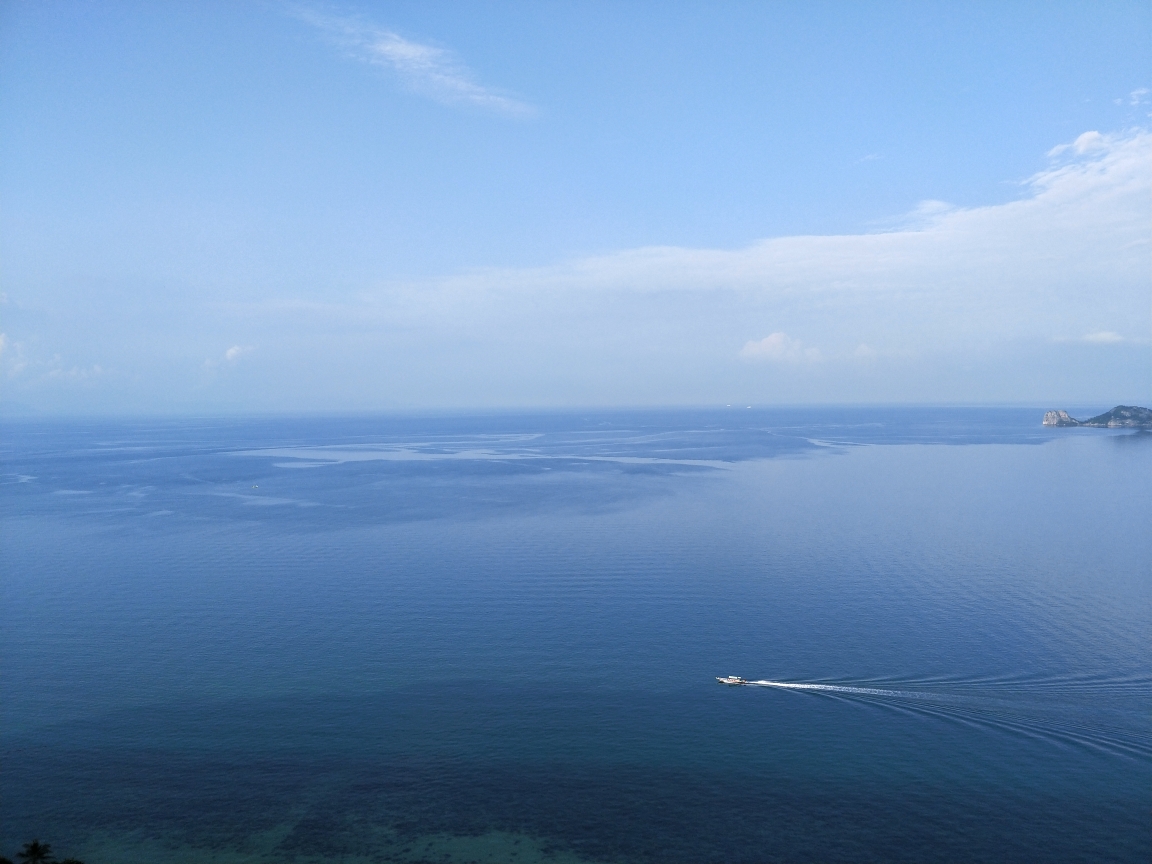 就那个快艇开过的一瞬间功夫,天就蓝了,海水也蓝了。都没有修图哟,全部实景。