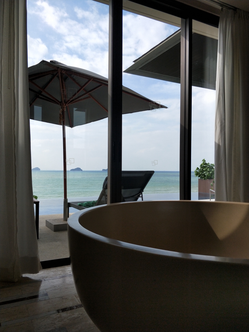 浴室很大。有干湿分离的马桶,有淋浴区,靠近落地窗那边,有个超级大的圆型浴缸。小矮人如我泡在里面能飘起来,直径大概有1米6。不管白天还是晚上,一边泡澡一边看窗外的风景,都觉得好惬意。