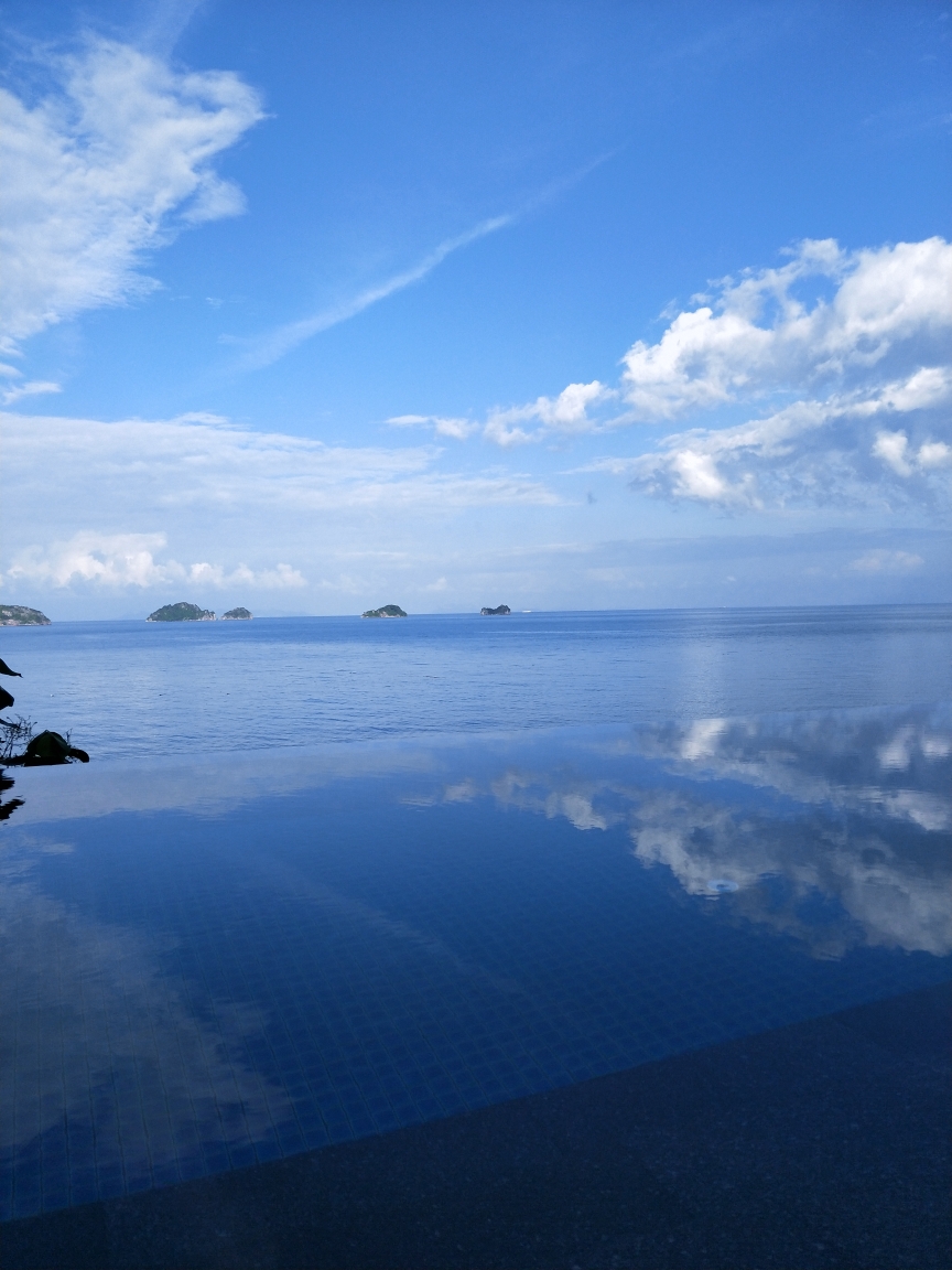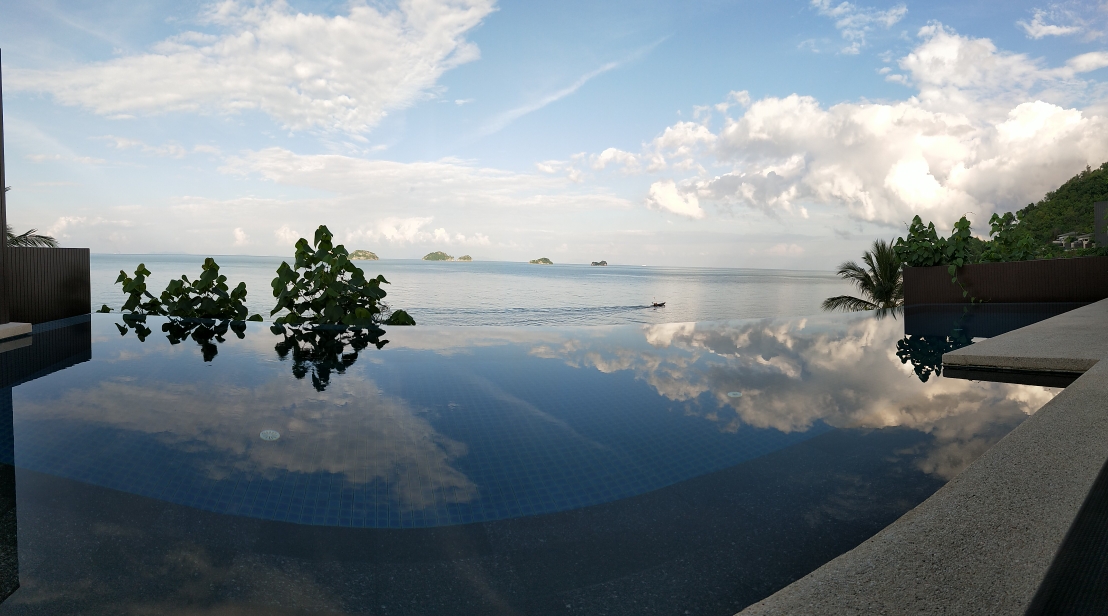 一开始为了全方位体验出境旅行,我们打算全都自己操办。护照我有现成的,等八戒的护照拿到后,我们在淘宝找了成都本地的旅行社代办签证,¥288/人,包含happy卡一张,赠个保险什么的,还可以自己上门取,简单易操作。不过八戒在网上找了很久,也没买到直飞的机票,转机的话,又怕不熟悉机场找不着北,我们都怕麻烦,思前想后,决定找旅行社定机酒。无奈意见不统一,选了好久,各种参考。最终,我妥协,听从他的决定,找八大洲,后来美好的行程都证明,听他的,真没错。好在我们的旅行目标比较一致,就是选个风景好的酒店发呆看海(没错,我们就是这么的,无趣)综合我们想要房间自带无边泳池,酒店直面大海的条件,酒店的筛选也还简单,不过预定过程就有一丢丢波折了。