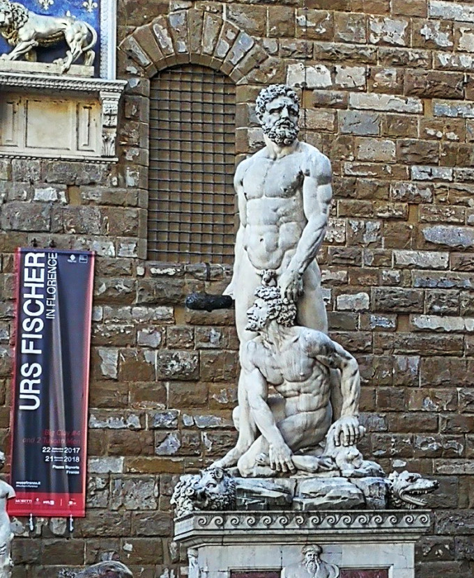 海格力斯是希腊神话中传说的大力神,由宇宙之神宙斯与民间之女所生。有关他英勇无畏,敢于斗争的神话故事,历来都是文艺家们乐于表现的主题。这尊塑像也是在韦奇奥宫门前的。