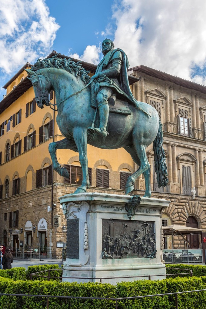 科西摩一世公爵,1537至1574年担任佛罗伦萨公爵,是意大利美第奇家族的主要代表。塑像目光坚毅,面容冷酷,定是个铁腕人物。