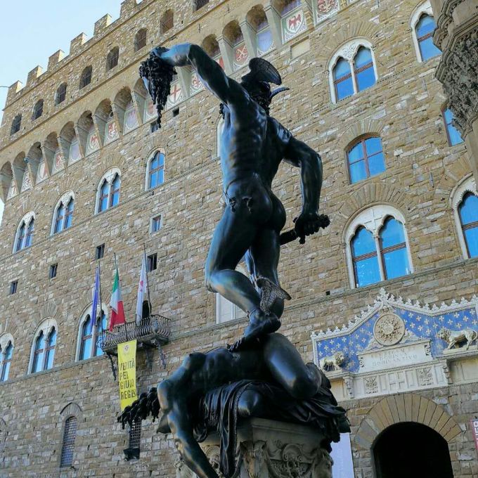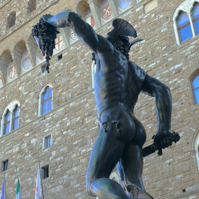 这尊精美的雕塑是精工之父本韦努托·切利尼花了十年时间创作的作品,是切利尼的少数大型铜像之一,创作完成于1554年。