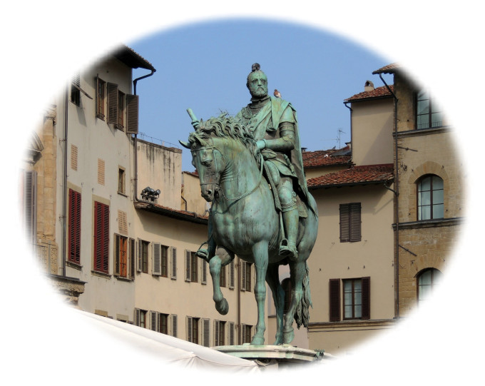这是被称为“祖国之父”的科西摩·美第奇的雕像。是由詹波隆那于1594年创作的。