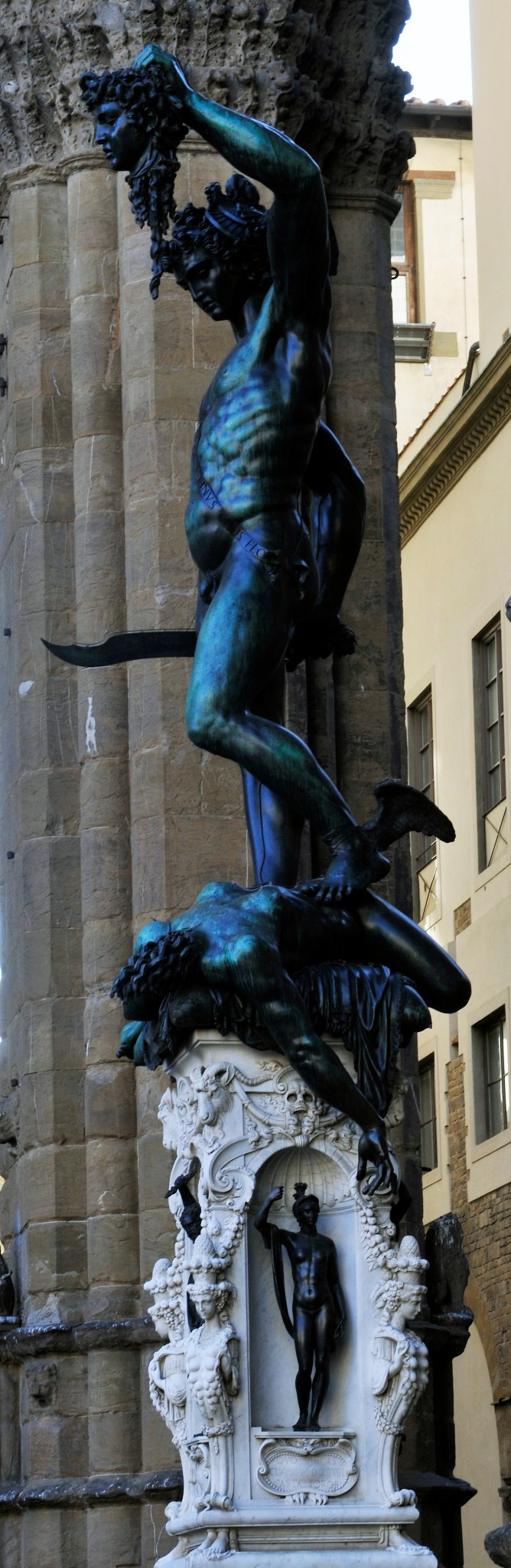在佣兵凉廊的最左边,矗立着一尊青铜雕塑《珀耳修斯杀女妖美杜莎》。