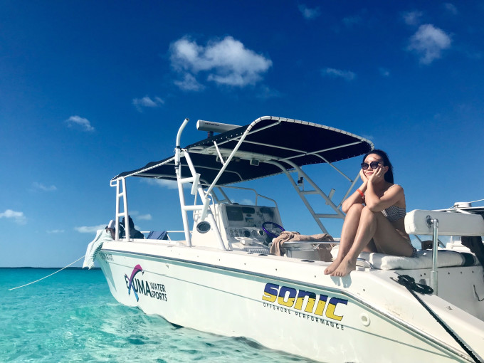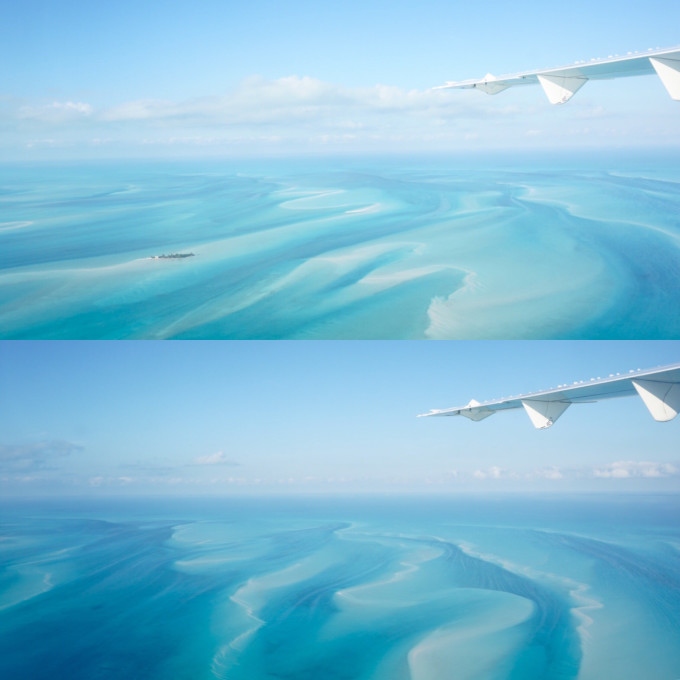 第四天的上午怀着满满的不舍离开了天堂岛,离开了亚特兰蒂斯,又满怀着满满的期待前往机场,飞往Exuma。这个小岛是即将开启网红猪岛之行的地方。一个多小时的飞行,又是目不转睛,相机不停地按下快门键,有小伙伴说在照片里看到了大堡礁的风采。