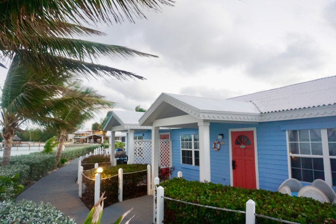 入住的酒店叫Hidesaways Exuma, 每一个住户都住在下图这样的小房子里,一个房子里一户,每一户都是一个套房,可以在里面简单的做饭,出门就是酒店的私人海滩,只可惜到的当天天气不好,还有一些些冷,加上当天不知为何酒店的无线故障,导致本来在境外就失联的我们彻底失联,晚上只能早早入睡。