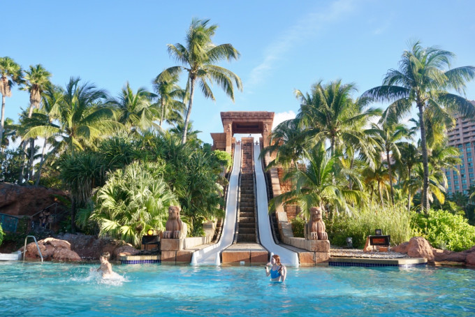 1. 如果觉得住在亚特兰蒂斯太贵,天堂岛上也有别的酒店,距离亚特兰蒂斯很近,不过亚特兰蒂斯水上乐园的门票是140刀一天,也有酒店是入住赠送门票的。水上乐园里也有供外来游客存包的柜子。