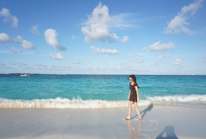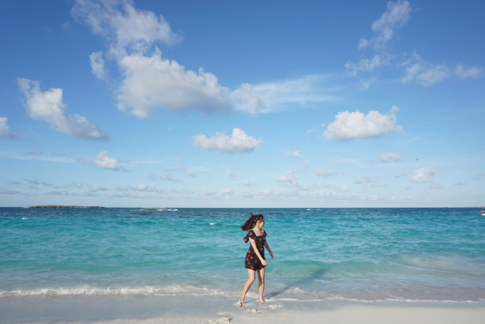 然后就是不得不提的巴哈马的海了。酒店的私人海滩上人并不多,所以想要找到地方拍组照片而不让其他人入镜还是非常容易的。虽然巴哈马当地的气温最高还能达到二十五六度,但海水温度依然达不到可以不颤抖的下水,再加上在游泳池里玩了个够,所以海边只是踩了踩水,蹋了蹋浪。