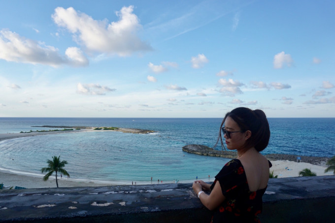 出飞机场打车到天堂岛45刀,另外还有上岛费2刀。遇到了一个很热情的女司机,全程给我们讲解,穿过了拿骚的城中,看到了靠港的四五艘大游轮,接着就是一路沿海的景色。
