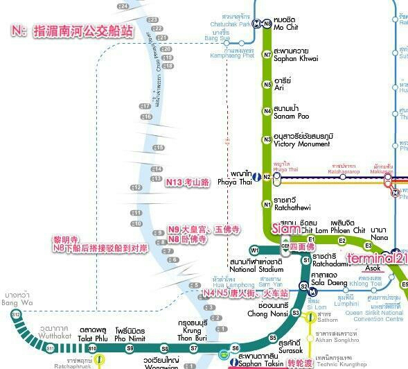 首先~从蒙奇站(Mo Chit)做了很多七个站到市中心(siam)换成另一条轻轨,然后坐坐坐,下了轻轨根据谷歌地图找青旅,且不说难不难找的问题,就是巨远,尤其是对于还手提行李的女生来说,把一天大路走完右拐直走在进到一天巷子的尽头,