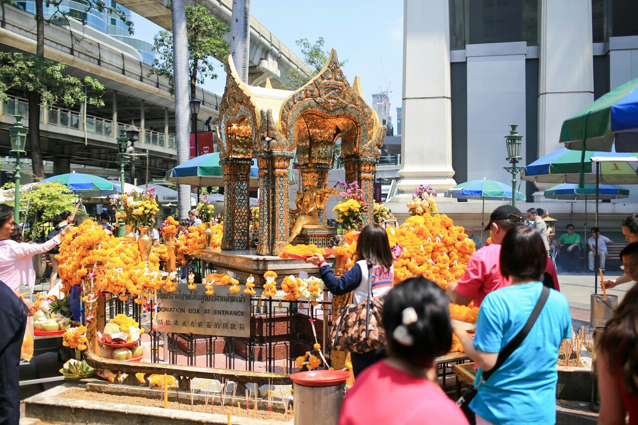(上图)不期而遇,香火鼎盛啊~就在siam商圈的轻轨下来不远处,附近还有泰国第一大学~朱拉隆功大学,相当于清华北大级别的,可惜了我这个最爱逛大学的学渣了中暑头疼的我,只想赶紧回去睡睡睡睡