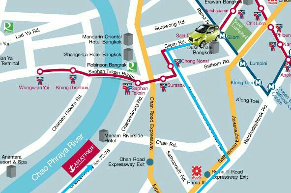 首先,如果你不知道哪里可以做,或者找不到码头的话,你就做轻轨到Saphan Taksin(郑王桥)然后从3号口出来,就到中央码头了,这里有很多家运行的公交车和免费做去河滨夜市和河对面的船,我们就是做免费的船去的河滨夜市,就在你看到的蓝色售票厅最左侧的小路,走进去~~然后排队就行,人挺多的,不过也很快~