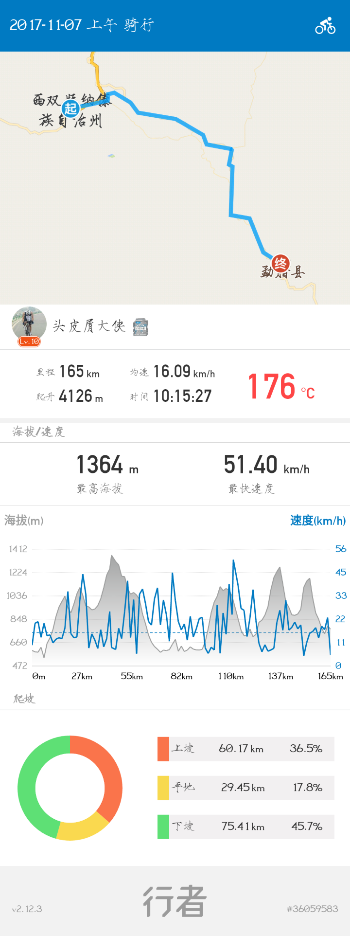 稍微有点经验的骑友一看这爬升就知道遭受了什么!