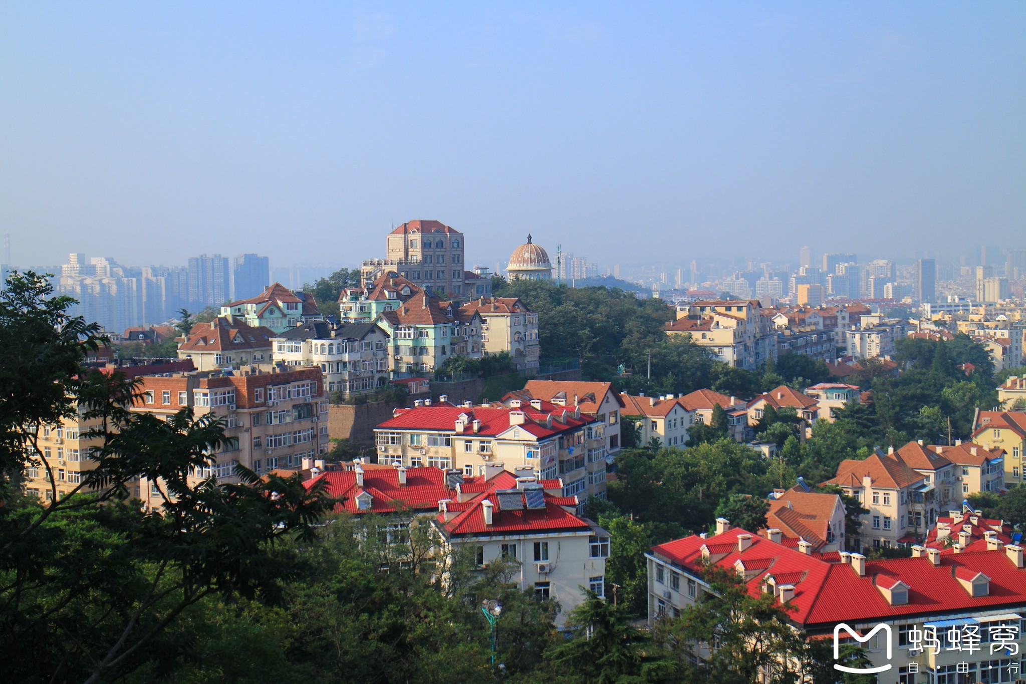 红屋,绿树,在青岛的夏天