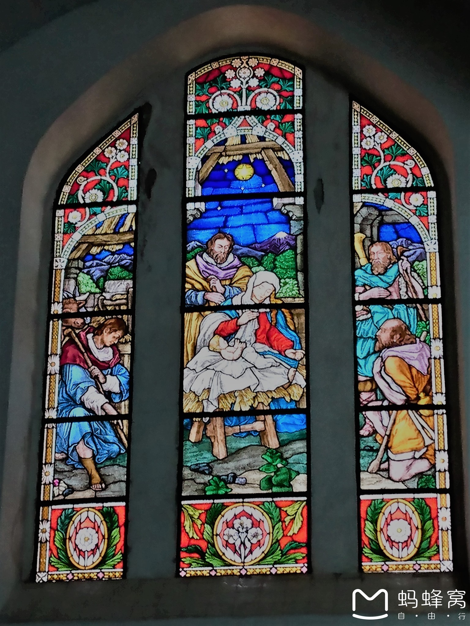 和很多基督教堂一样,里头也有漂亮的圣经故事窗花。