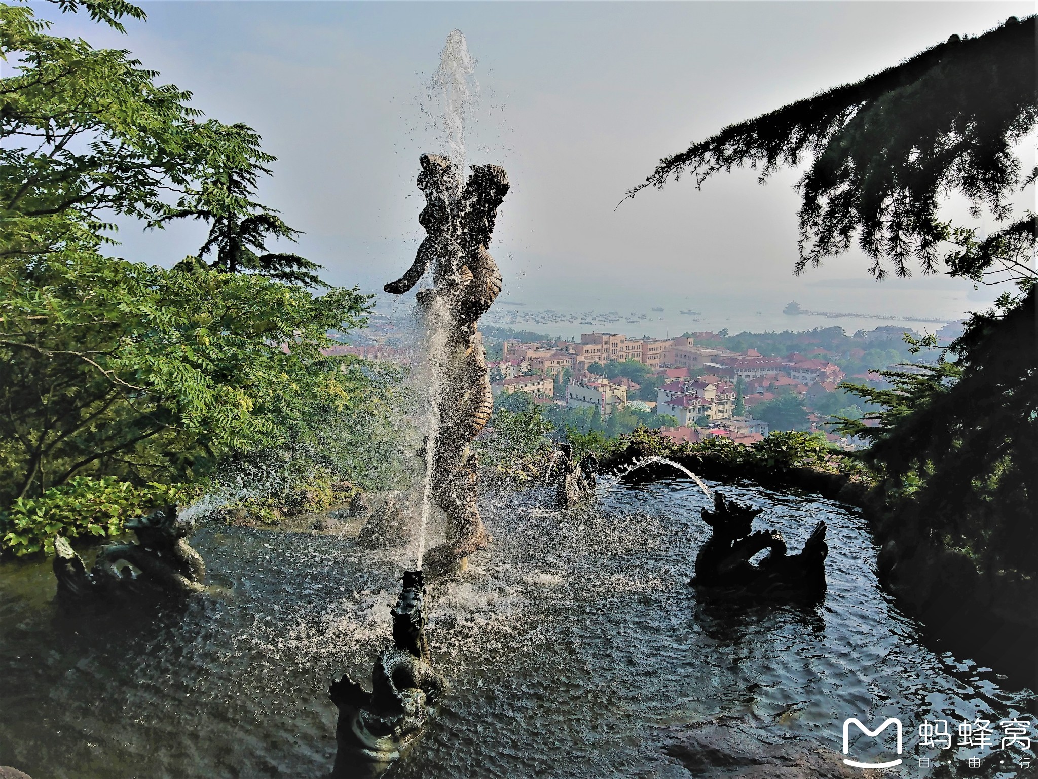 沿途看到了我在济南看过的五龙喷泉(?)和着青岛的海景,好美!