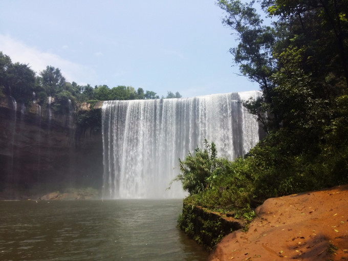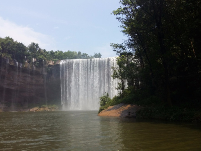 这个水潭名叫青龙潭,约8500平方米,平均深度15米,最深处有25米。在阳光的照射下,瀑雾处处成虹。