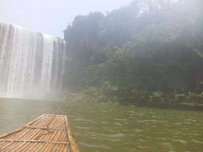 我们在水面玩了大约一个多小时,两次靠近瀑布,不敢靠的太近,一来景区有拉警戒线,二来越靠近水雾越大,整个人都湿透了,所以上面这个竹筏的图应该就算是比较近的了。