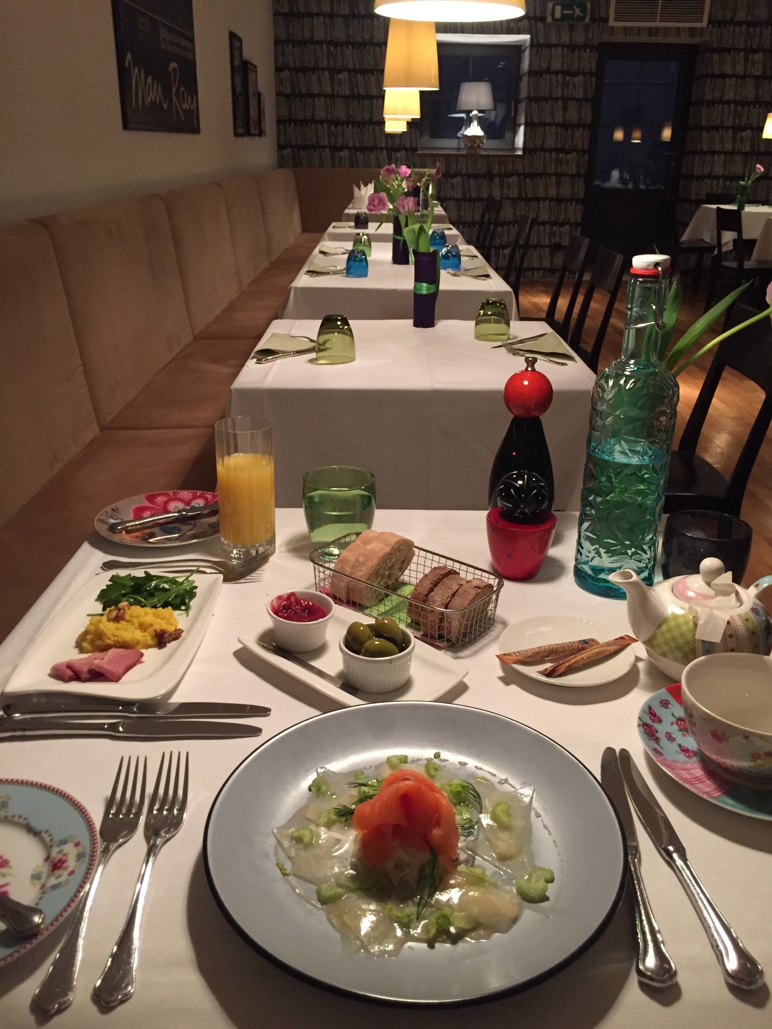 喝完咖啡外面还是滴滴答答在下雨,我们两个撑一把小伞决定走去餐厅吃个饭早早回家看电视~在这里我要为这家餐厅cafe restaurant Dengg疯狂打call!它的装潢、餐具、服务、口味我样样都很喜欢。这也许是这次小游的一个最大的亮点。吃一顿美好的饭真的太重要了!!从茶具到盘子到调味瓶已经给人一种很赏心悦目的感觉,加上菜品的精致摆盘和恰到好处的口感。真的太太太舒服了~ 强烈推荐!!!