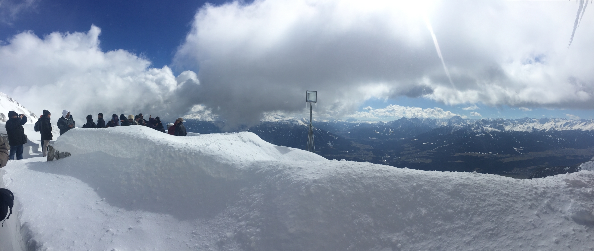 继续坐一段缆车可以到hafelekar station,这里有一个观测点。人很多所以我们没有逗留太久..特意拍了站在雪上的小鸟,小鸟真的很厉害呀,这么冷都不怕~