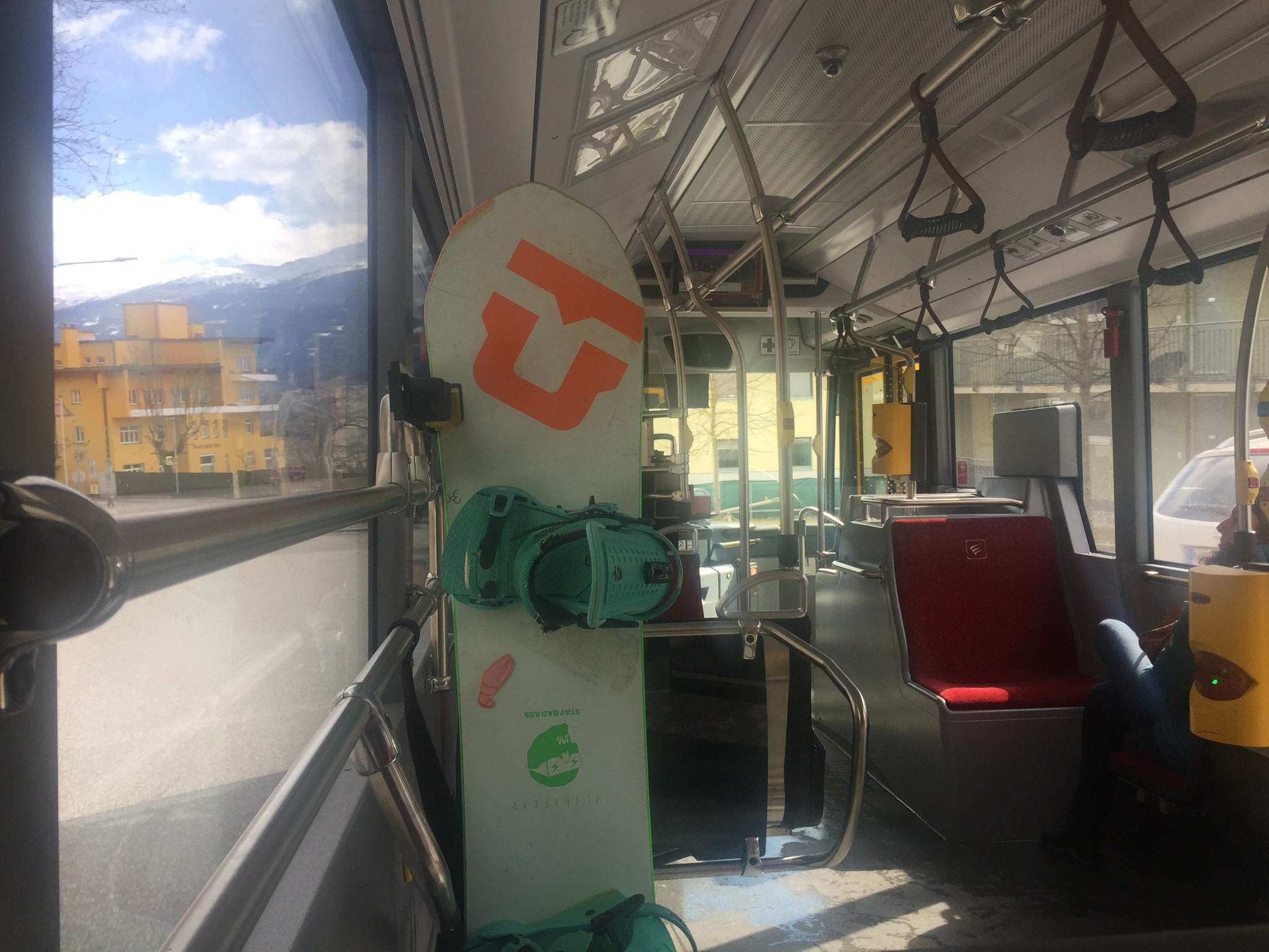 下山的时候总算知道了公交车上一排像放伞一样的夹子是干什么用的了。可能这边滑雪的人很多,公车上专门还配了夹滑雪板的地方