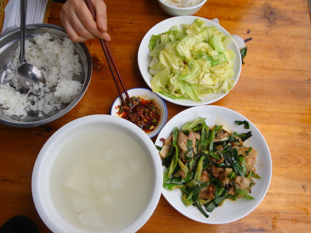一荤一素一汤足矣。老板说萝卜是自家地里的,确实很甜。要是猪肉也是自家的,就更好了。