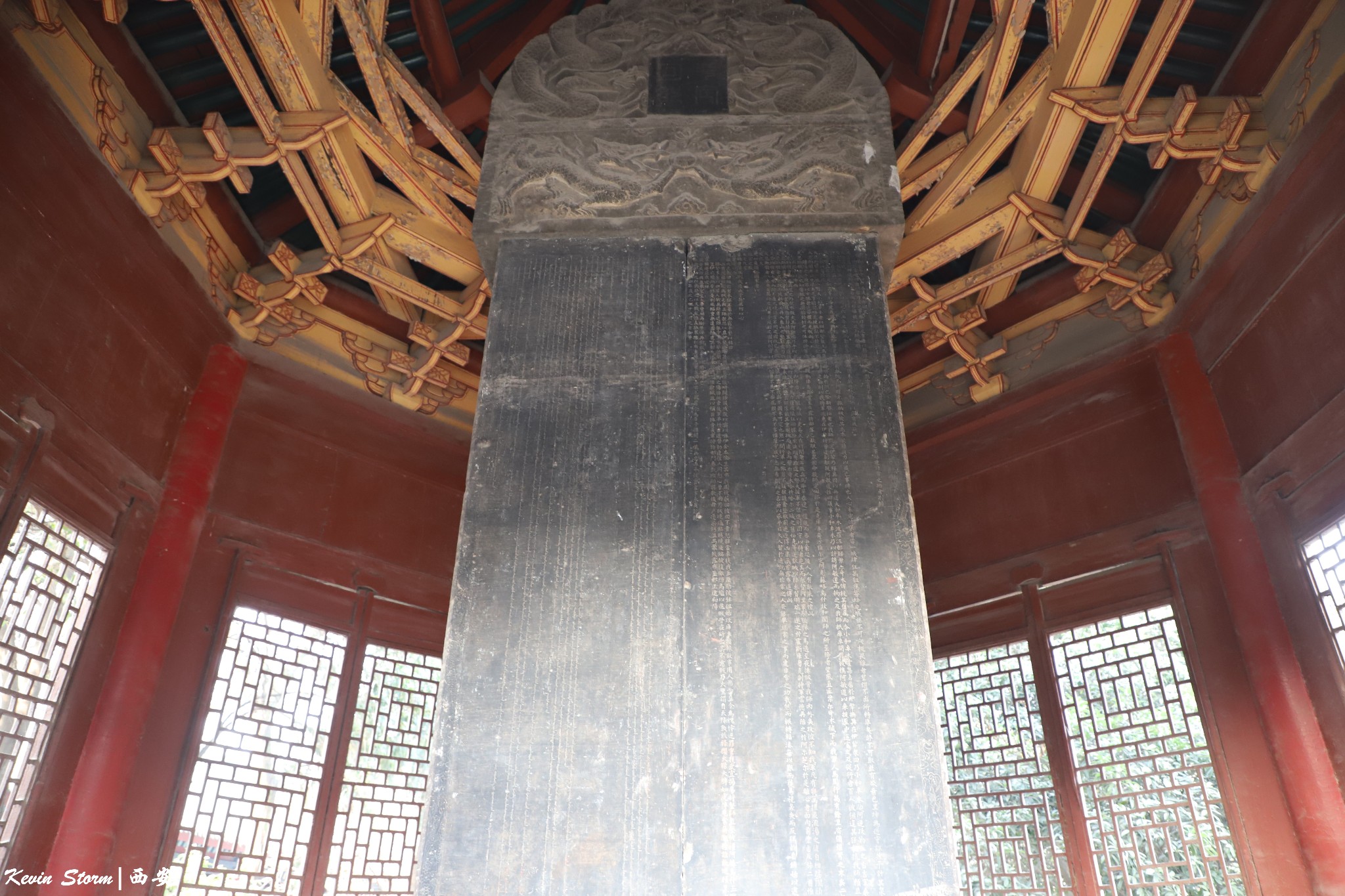在写有“碑林”二字的碑亭下屹立着“石台孝经”。《孝经》是孔子的学生曾参记述他与孔子的交谈语录,主要内容是讲孝、悌之道。碑文是唐玄宗雍容华丽的“开元体”隶书。中国的传统思想、传统书法和传统雕刻艺术都融入了这座石碑,不得不再次感慨中华文化博大精深啊。
