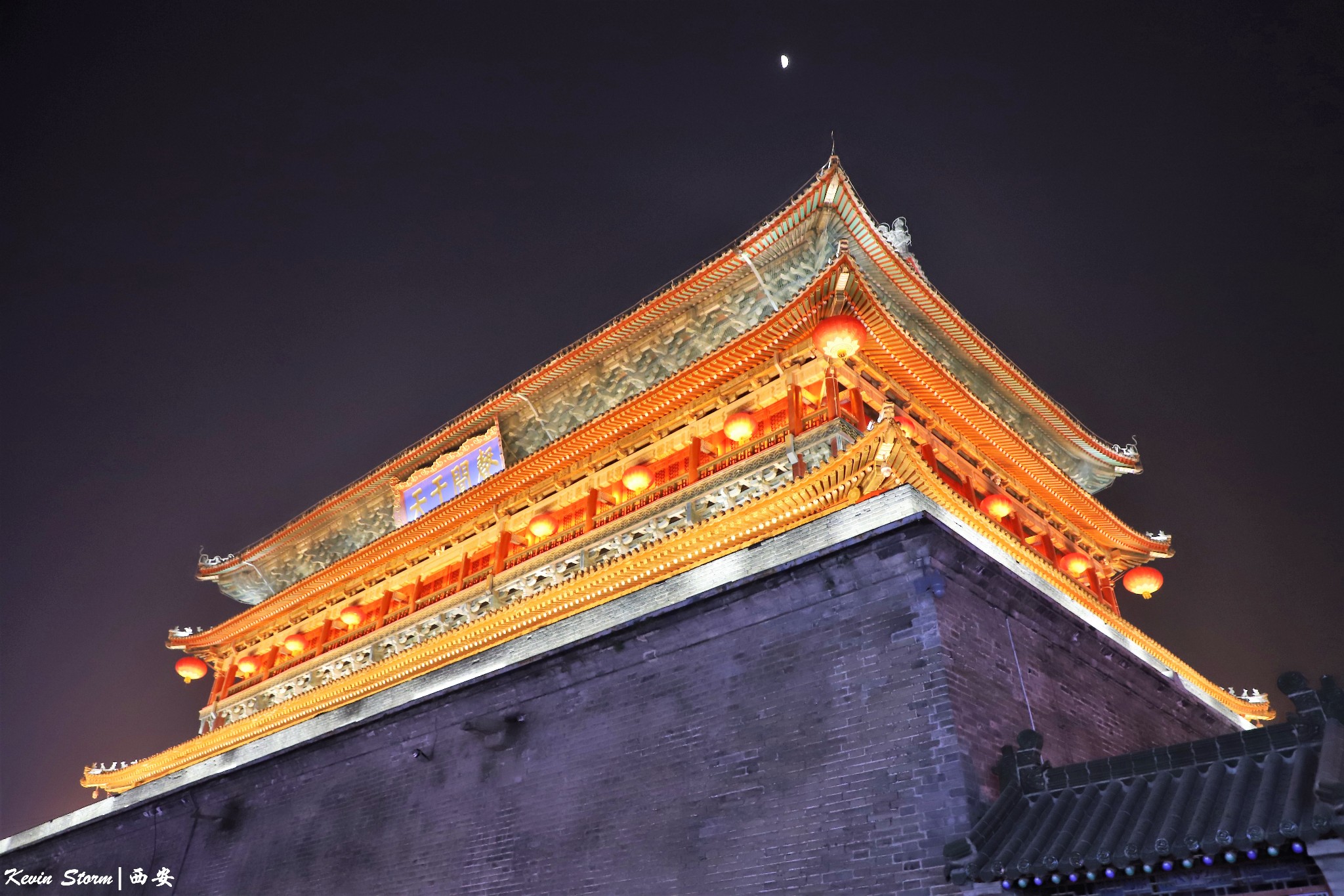 晚上从回民街满载而归时刚好路过鼓楼,一轮玄月挂着楼顶,又逢年底,只身在外,难免有“举头望明月,低头思故乡”的乡愁。