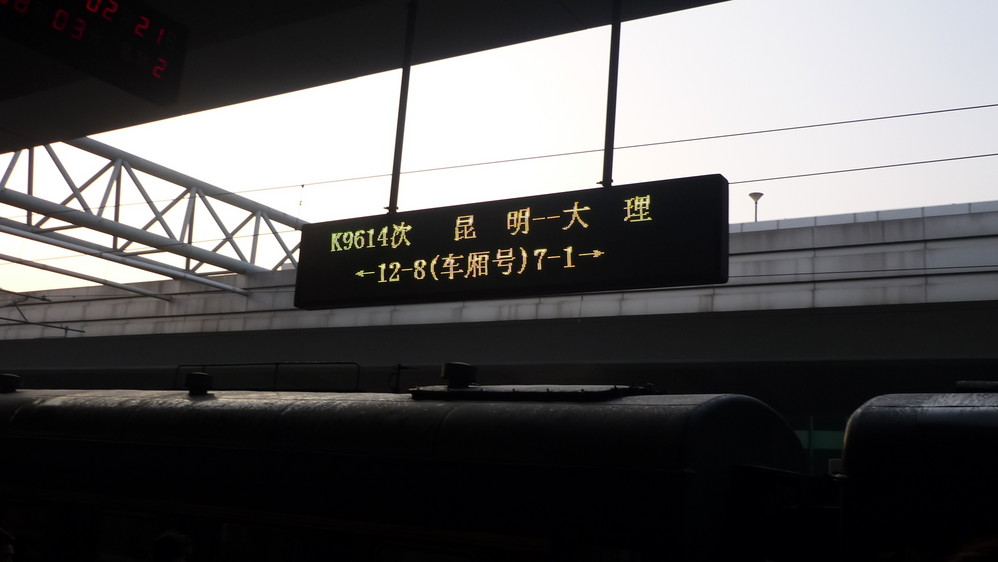 我们的计划是先去大理玩两天再回到昆明玩。所以早上5点半左右到达昆明以后就买了当天早上8点28分去大理的车票。在火车站附近吃了点早餐,就来到候车厅等车。不得不说,昆明的候车厅真的很宽敞,也很好,记忆深刻的就是候车厅的购物长廊。。。很喜欢里面卖的蝴蝶标本。