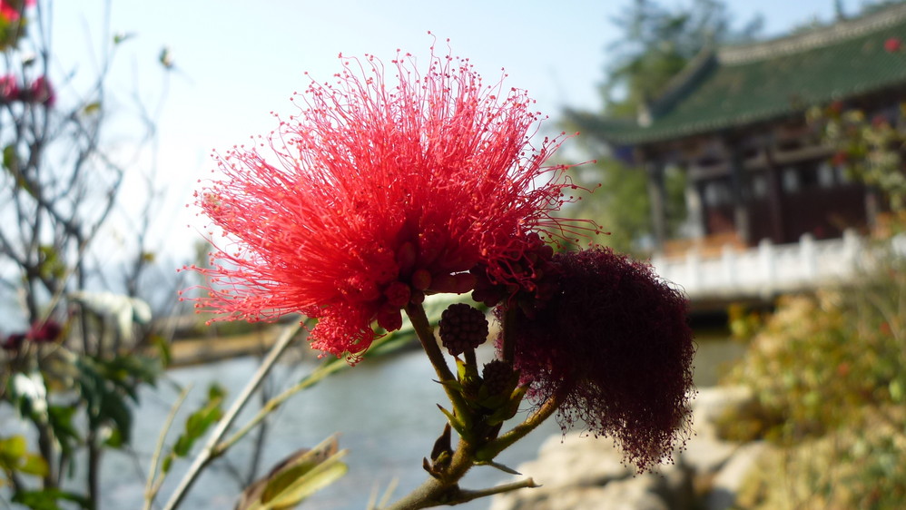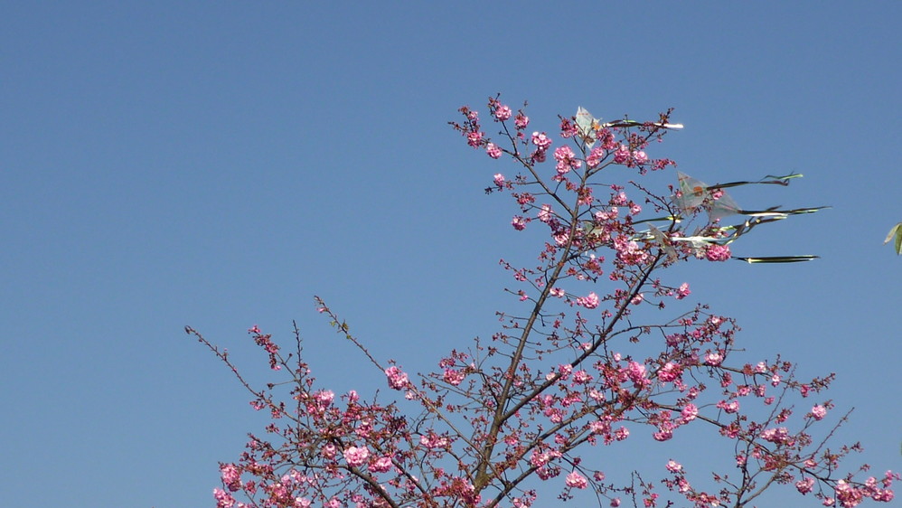 由于气候原因云南的花都 开得很早。天空也很蓝。美不胜收。