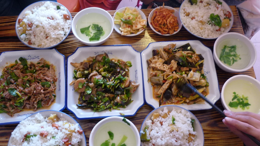 从公园出来在大理学院附近吃的早餐加午餐。特色是“铜锅洋芋饭”不过凉拌的配菜也很好吃。