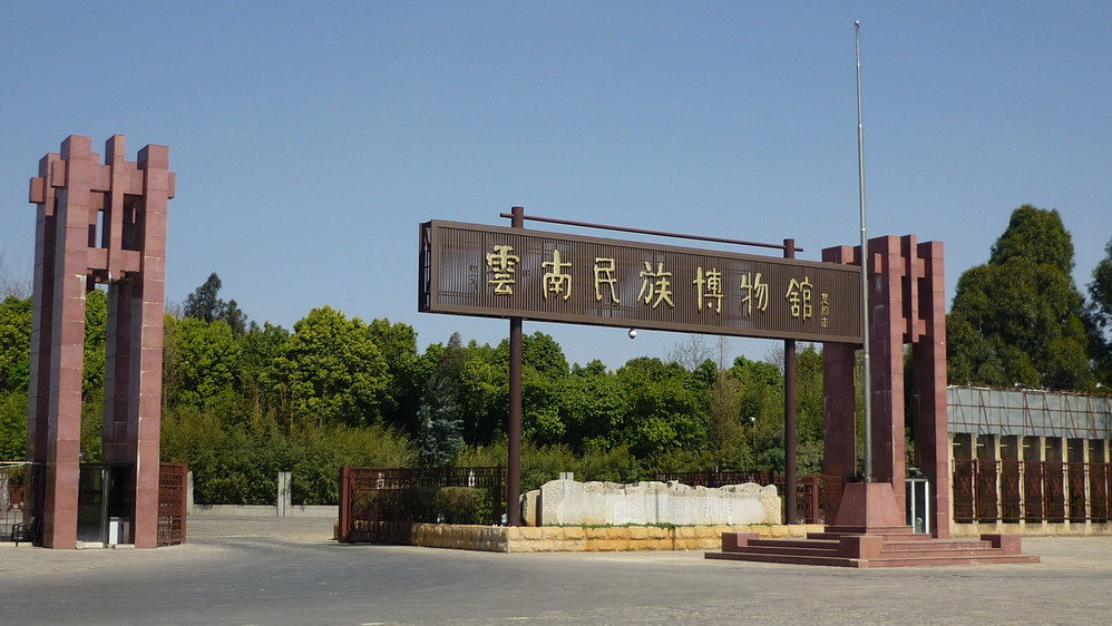吃过东西去了云南民族博物馆。路线是这样的——公交车先到大理学院,然后到民族村,然后再到海埂滇池公园。所以从公园出来我们坐车去大理学院吃东西,又返回民族博物馆,博物馆在民族村对面。这个博物馆里可以看的东西还是挺多的,当然大多都是与民族的东西有关的。